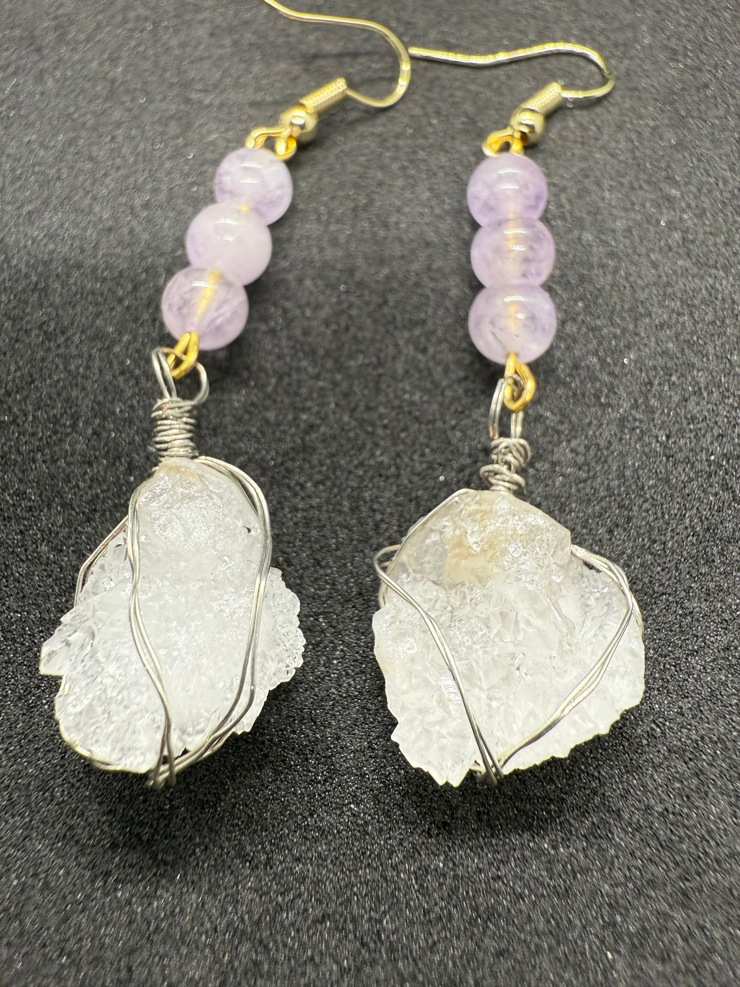 この水晶原石ワイヤーピアスは、高品質な水晶原石を使用し、ワイヤーラッピングによって丁寧に仕上げられた特別なアイテムです。水晶のクリアな輝きが耳元に華やかさを添え、デイリーユースにもぴったりのおしゃれなアクセサリーです。