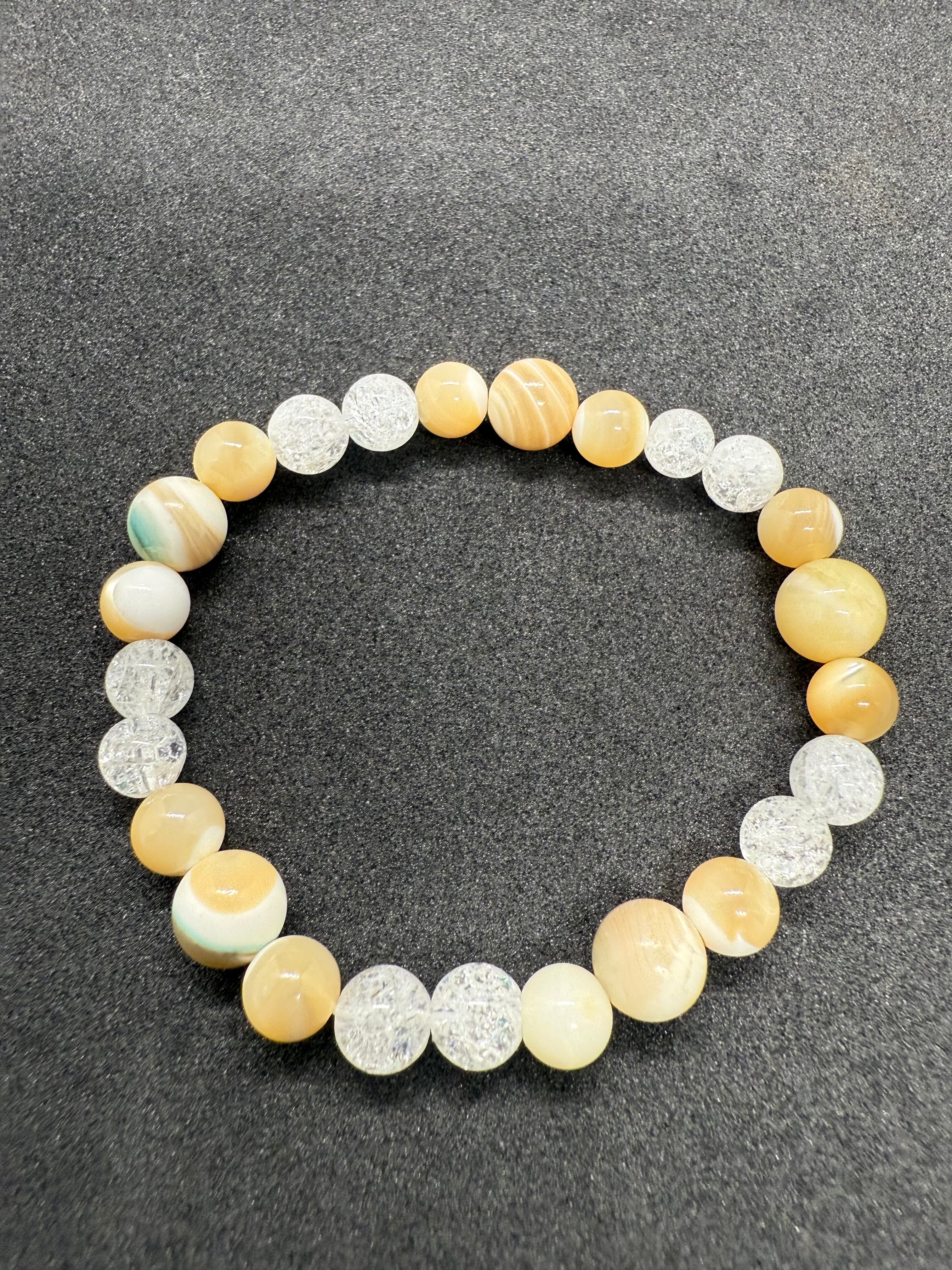 デザイン:貝を主役にし、クラック水晶が水の中のバブルを表現したハンドメイドのブレスレット