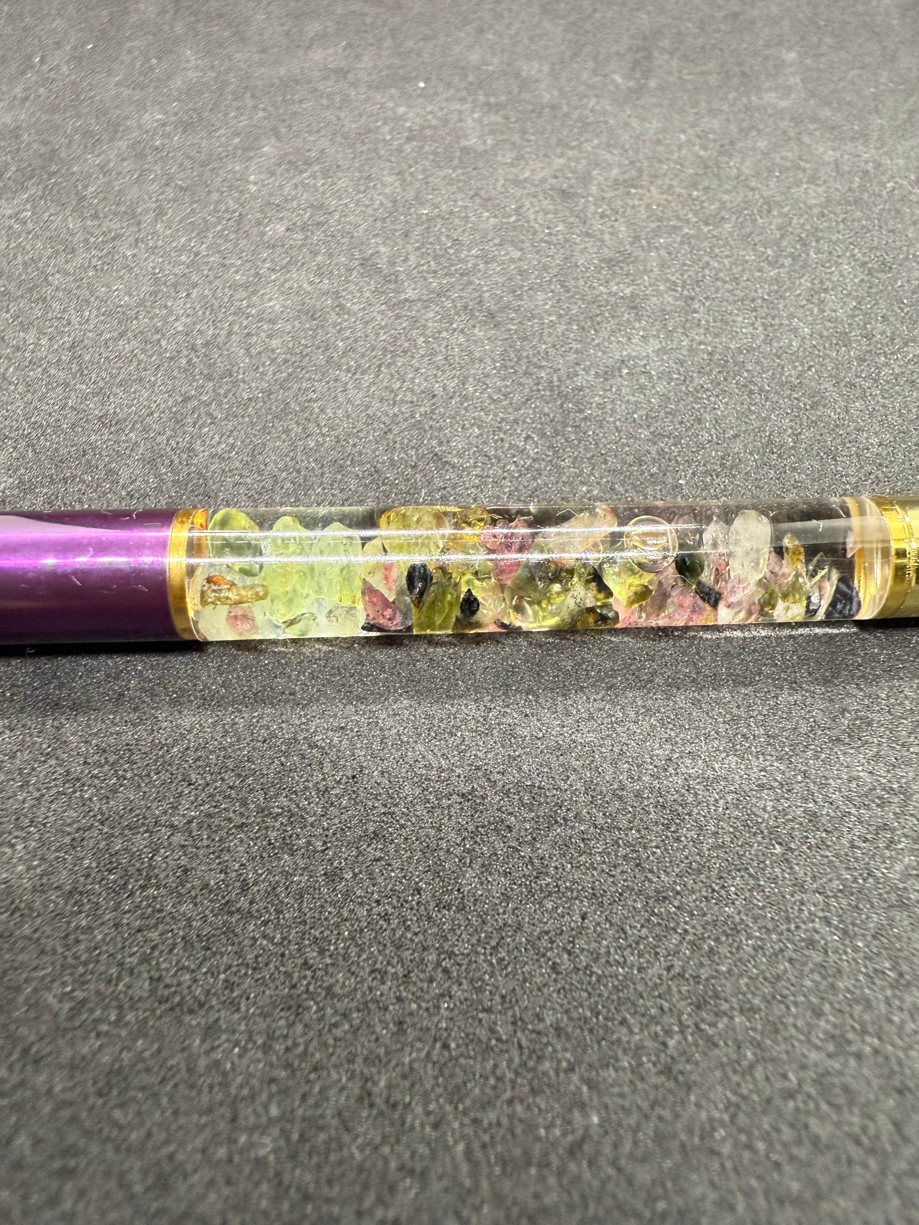 トルマリン、ペリドット、アクアマリンを組み合わせたデザインが、手元に多彩なエネルギーとインスピレーションをもたらします。このボールペンを手に取ることで、創造的な思考を促進し、書くことの楽しさを実感することができるでしょう。