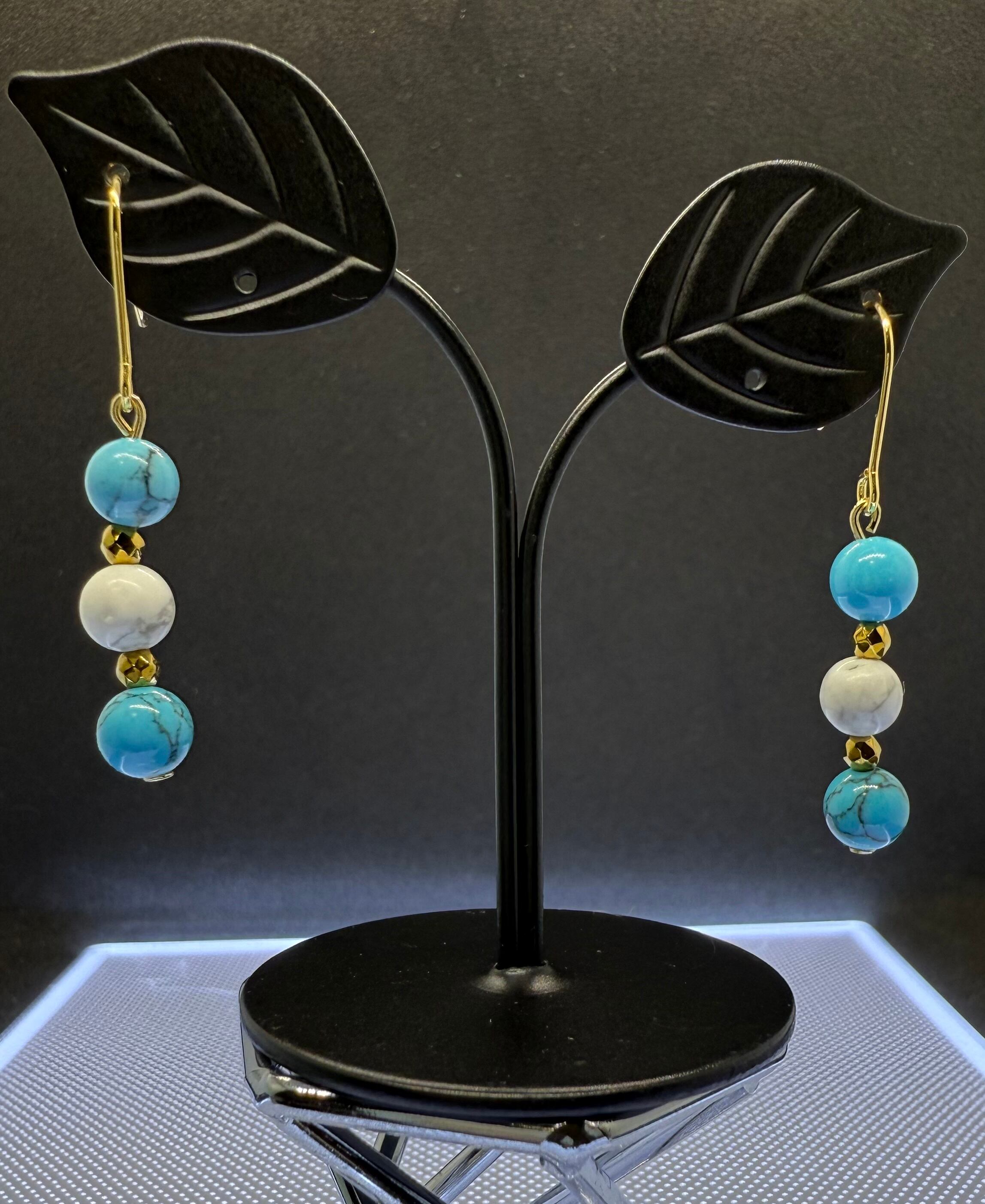 これらのピアスを着けることで、日常のコーディネートにナチュラルなアクセントを加え、あなたの魅力を一層引き立てます。ハウライトターコイズの持つ自然の美しさを感じながら、おしゃれを楽しんでください。