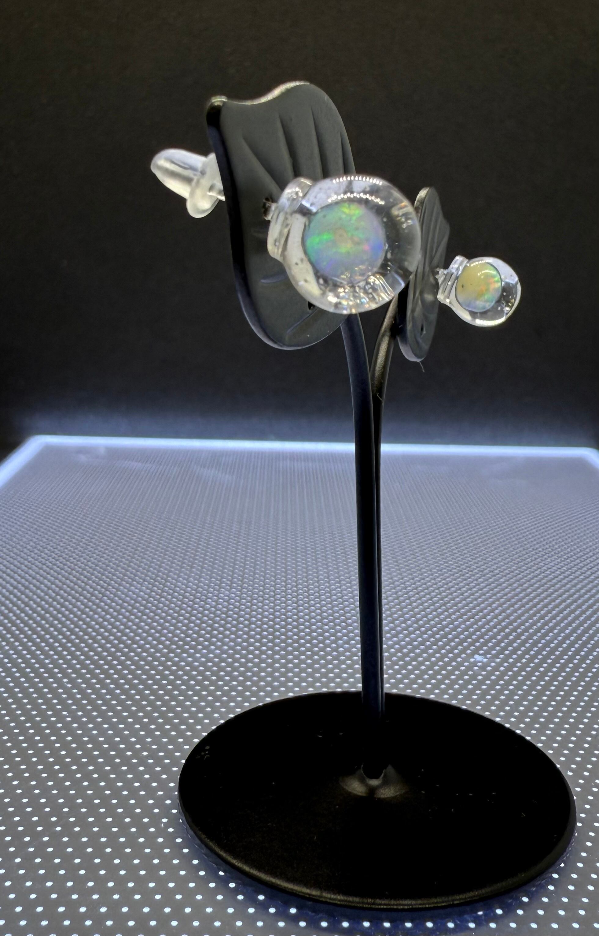 デザイン:オパールをレジンで包んだ、シンプルながらも華やかなスタッドピアスです。