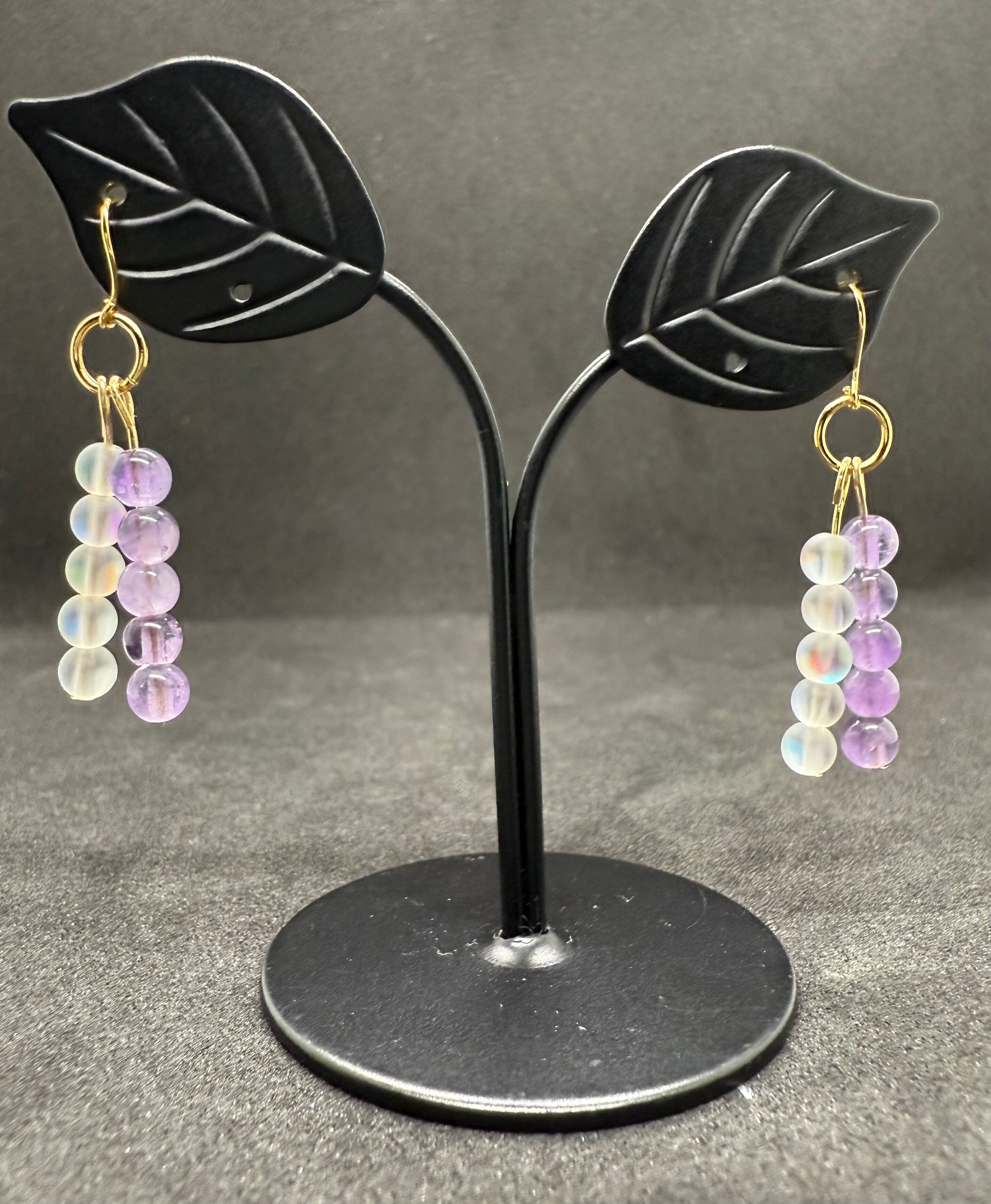 デザイン:神秘的なアメジストビーズを使用した、シンプルでありながらも目を引く個性的なピアスです。
