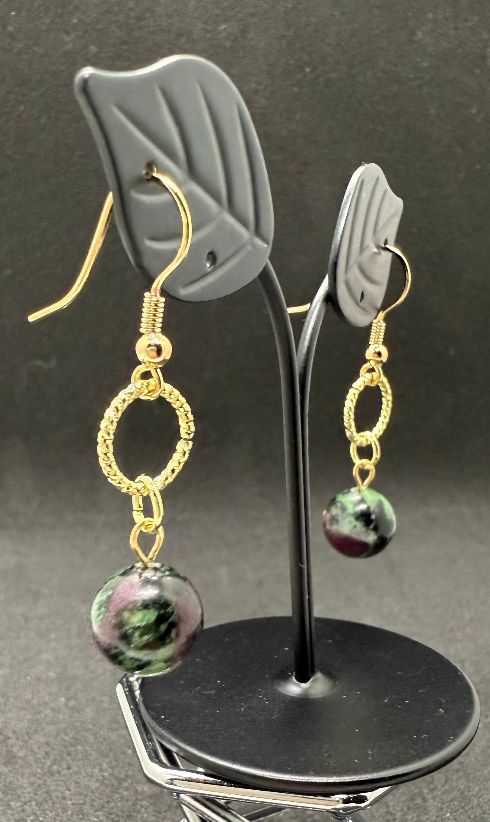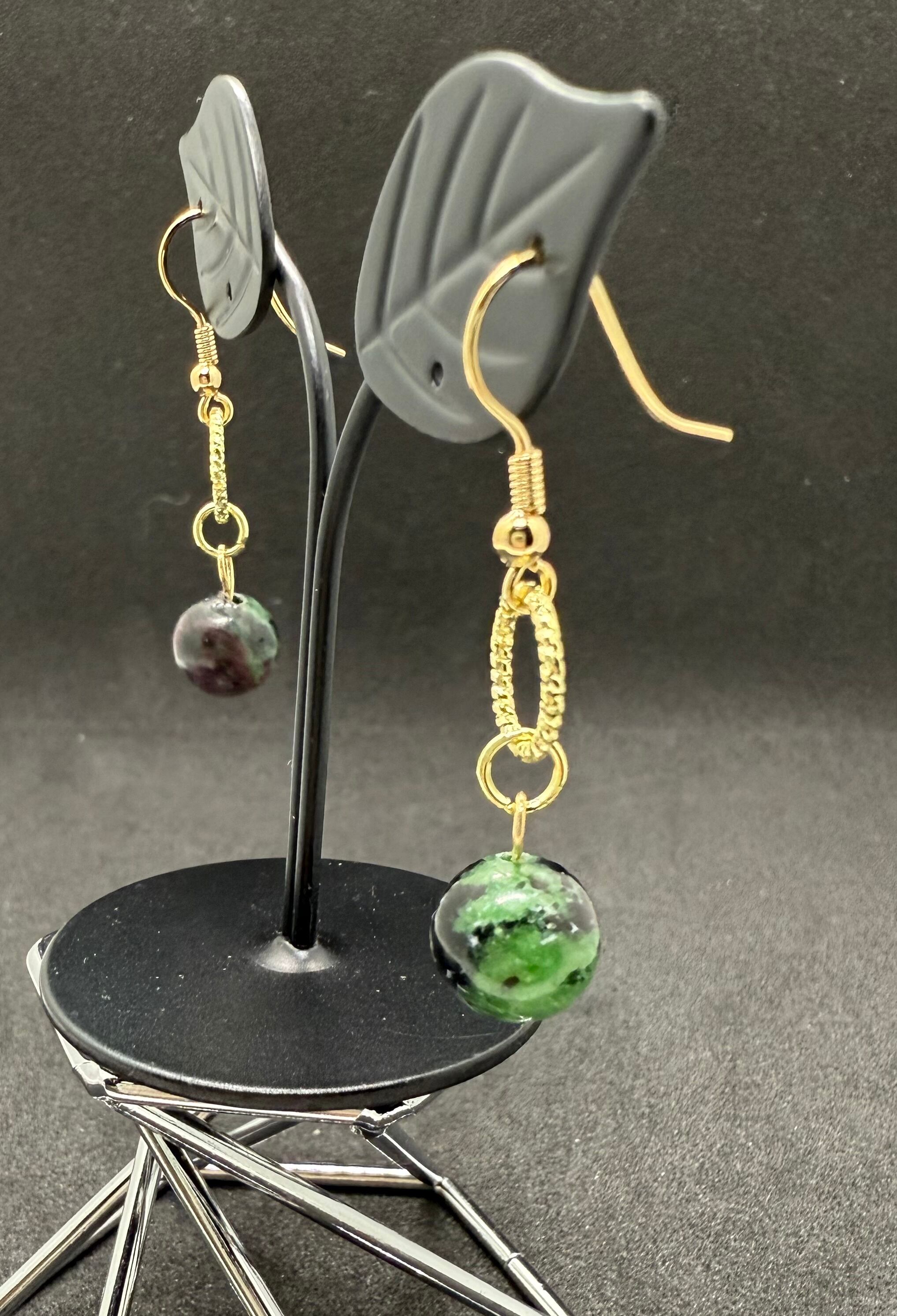 素材:ルビーインゾイサイトを使用した美しいビーズのピアス