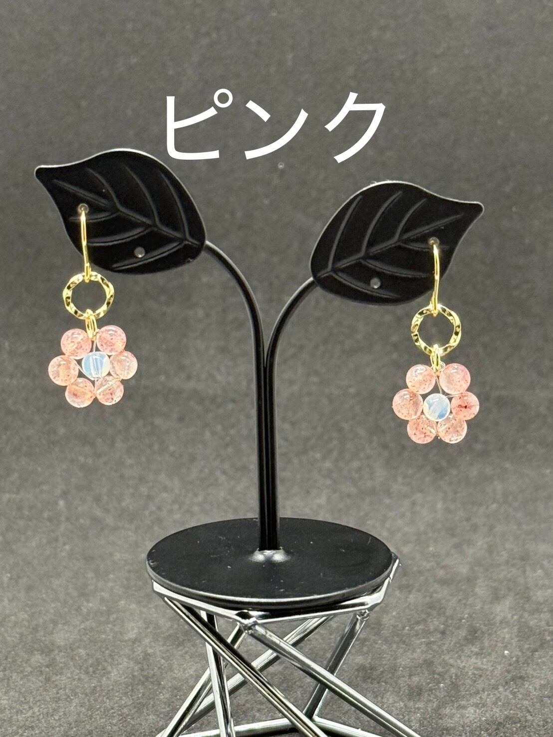 商品名:天然石ビーズピアス フラワー