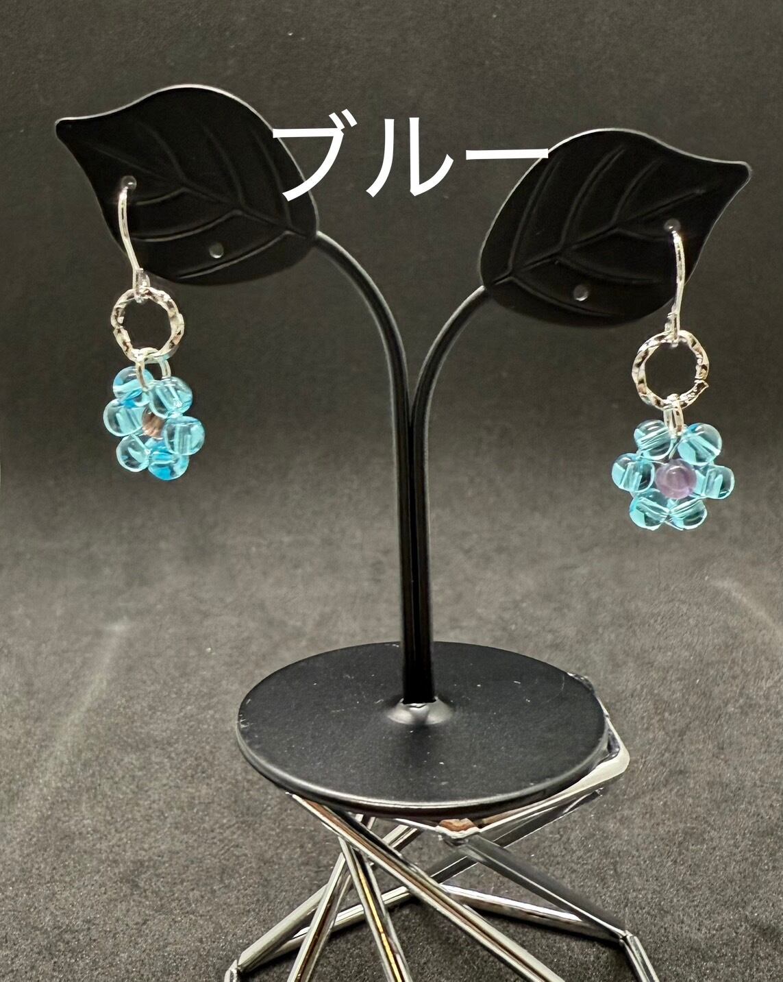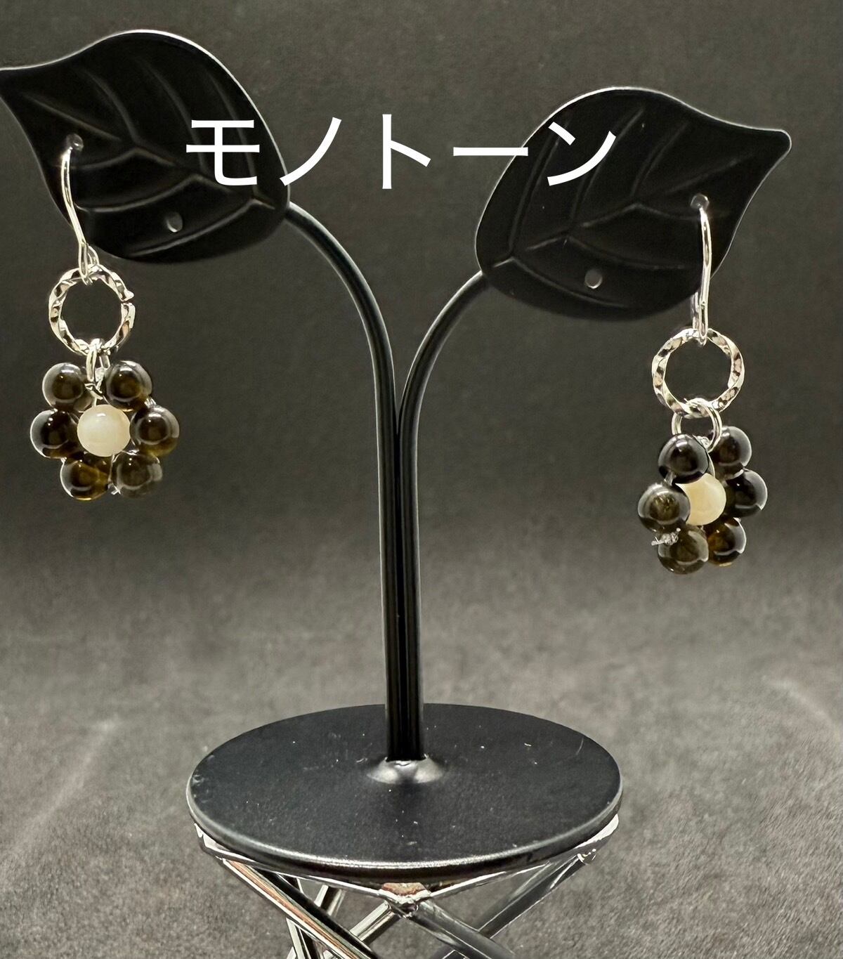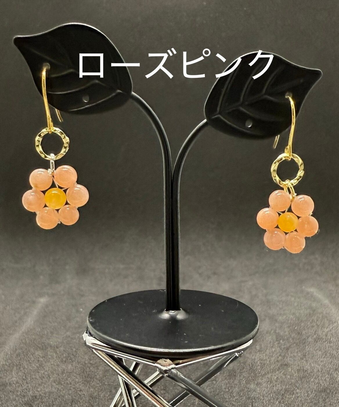 素材:天然石ビーズを使用したフラワーモチーフのハンドメイドピアス