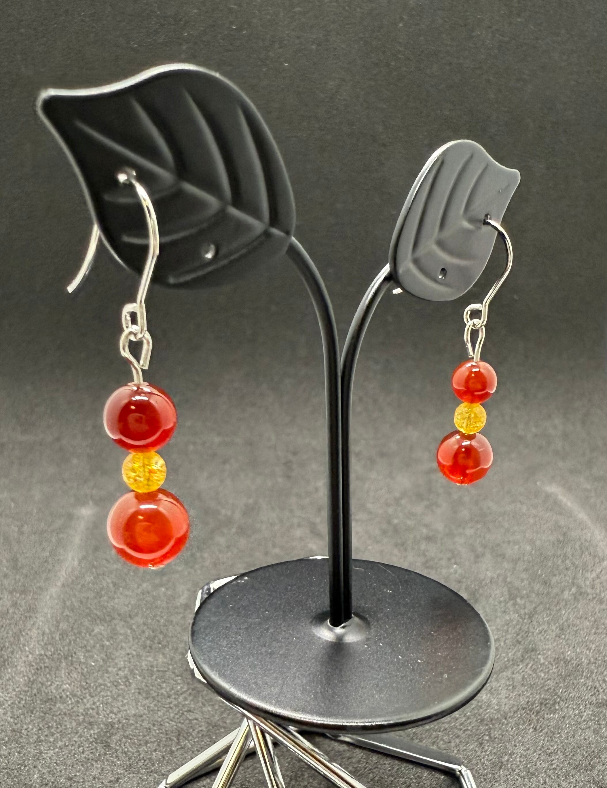 素材:レッドアゲートの天然石ビーズを使用したハンドメイドピアス
