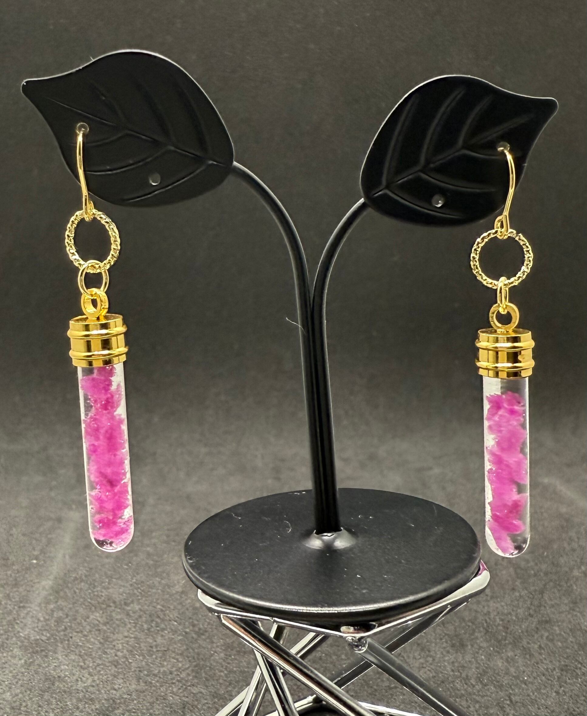 素材:ルビー、エメラルド、アメジストを封入した、美しいリングデザインのチューブピアス