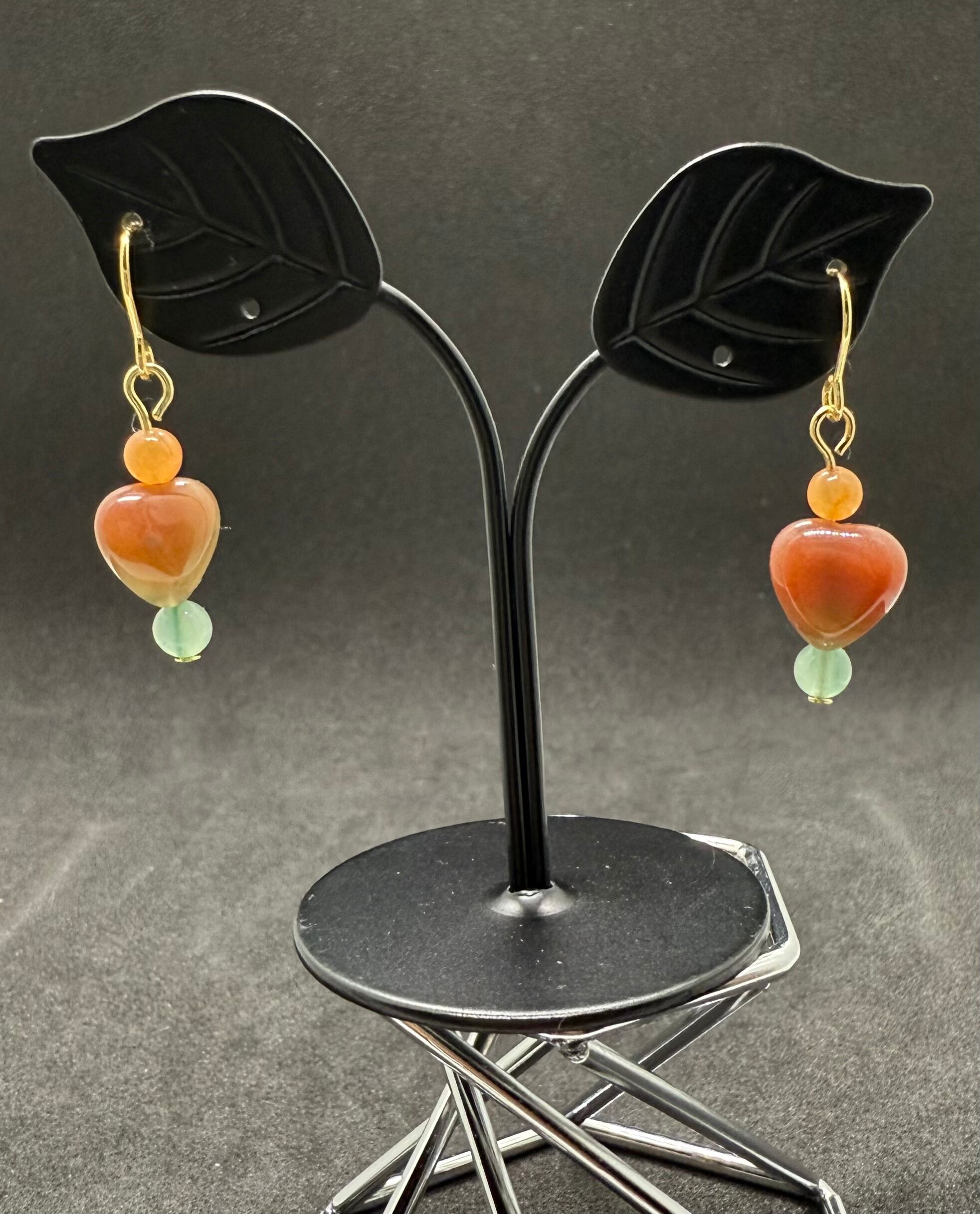 素材:モスアゲートを使用した、優しい色合いのハート型ビーズピアス