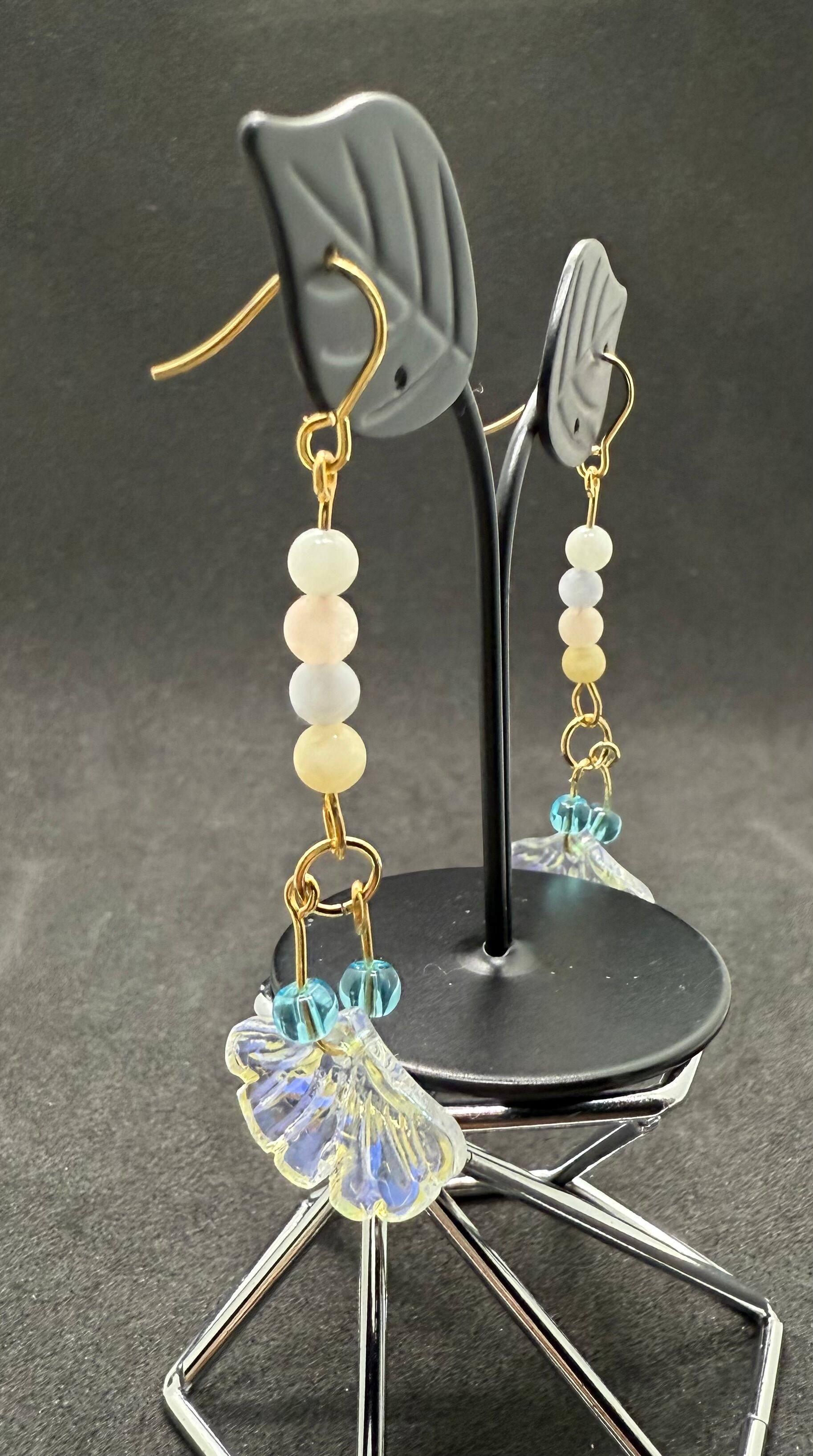 素材:ファンシーシェルとベリルを使用した、華やかで個性的なビーズピアス