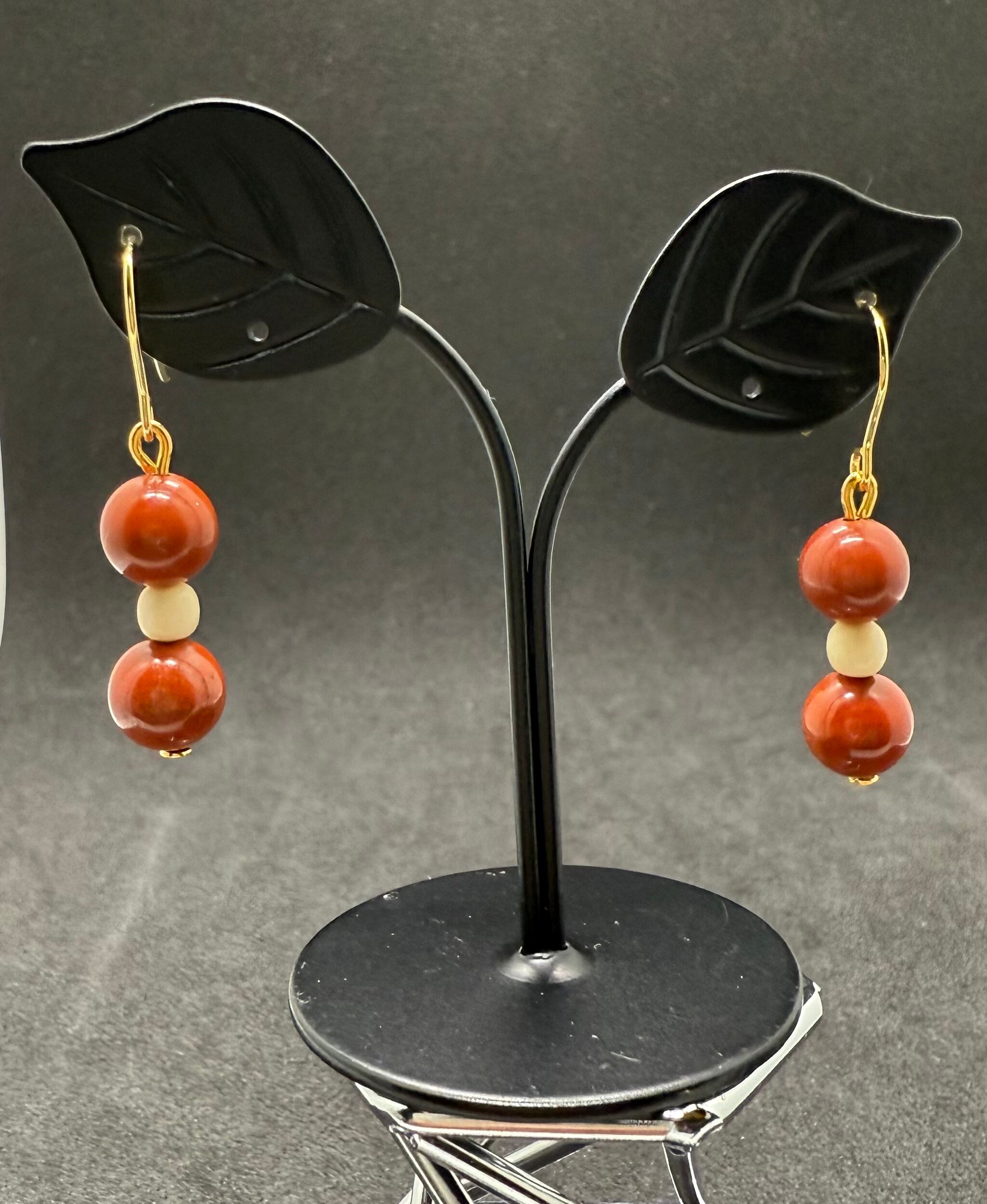 素材:美しい天然石を使用した、ハンドメイドのレッドジャスパービーズピアス