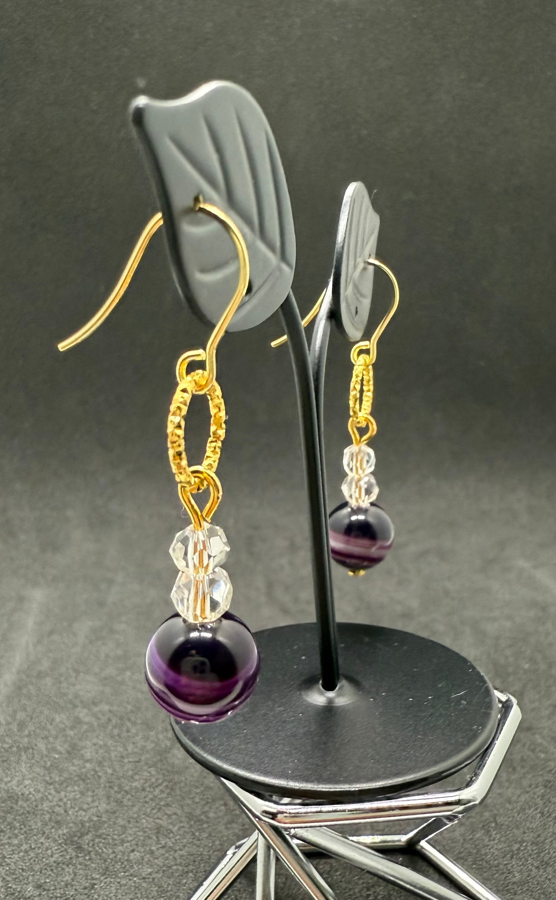 素材:美しい天然石を使用した、ハンドメイドのしまめのうビーズピアス