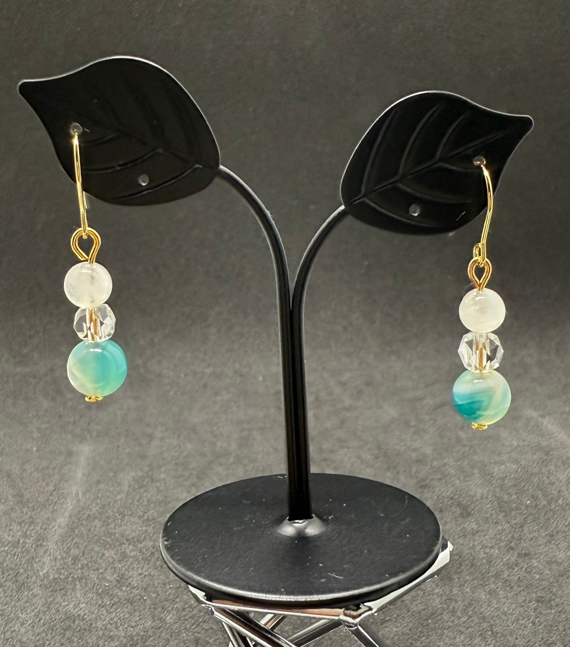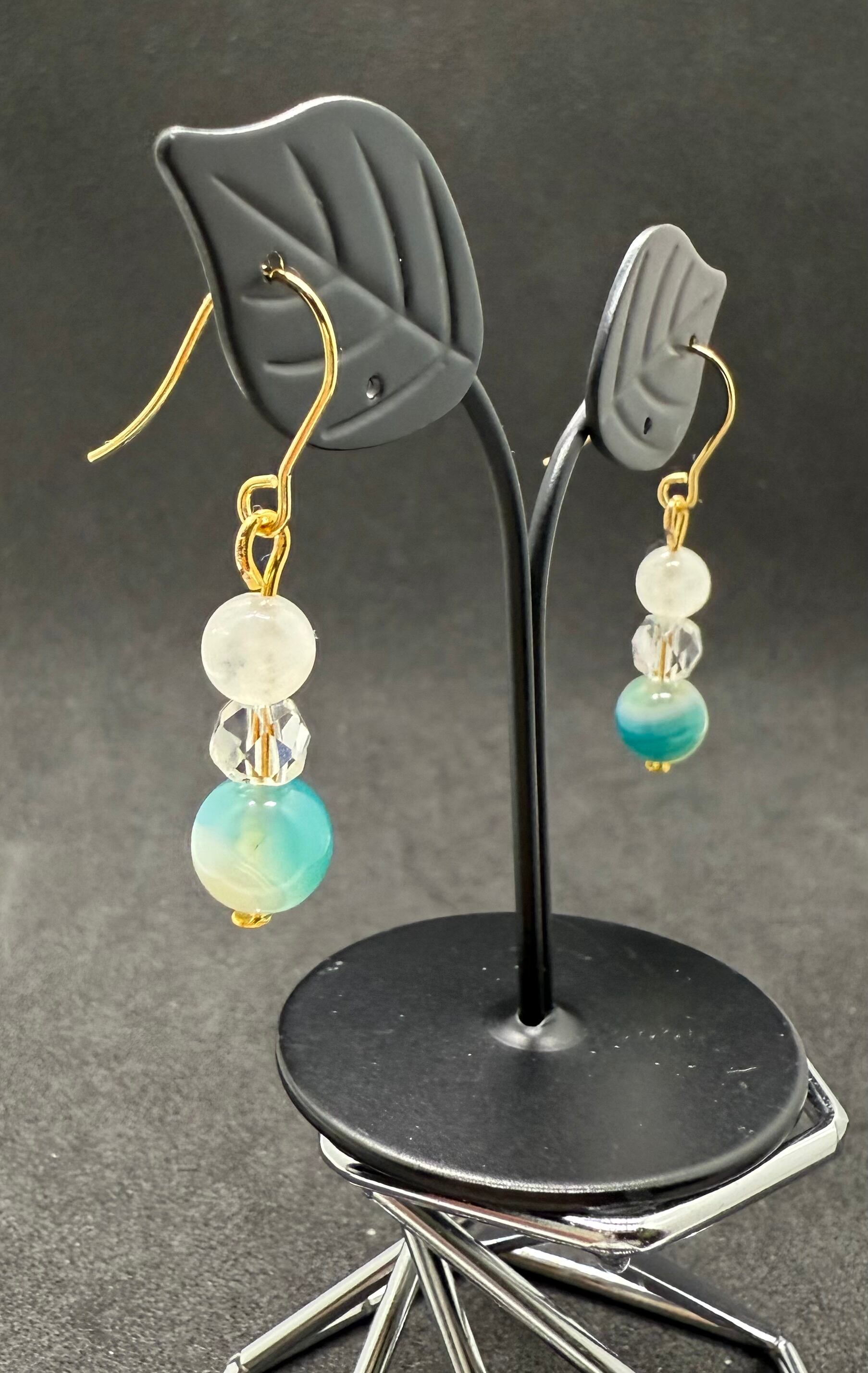 素材:美しい天然石を使用した、ハンドメイドのブルーしまめのうビーズピアス