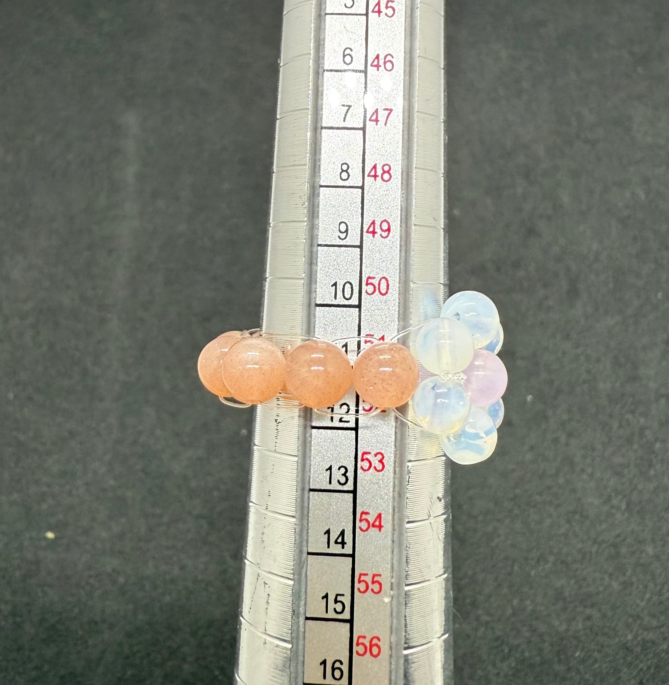 この「天然石ビーズ フラワーリング」は、日常使いや特別な瞬間のためのアイテムとして、あなたのスタイルを一層引き立てます。天然石がもたらすエネルギーを感じながら、自分らしいおしゃれを楽しんでください。見る人を魅了する美しさを体験できることに、喜びを感じることでしょう!