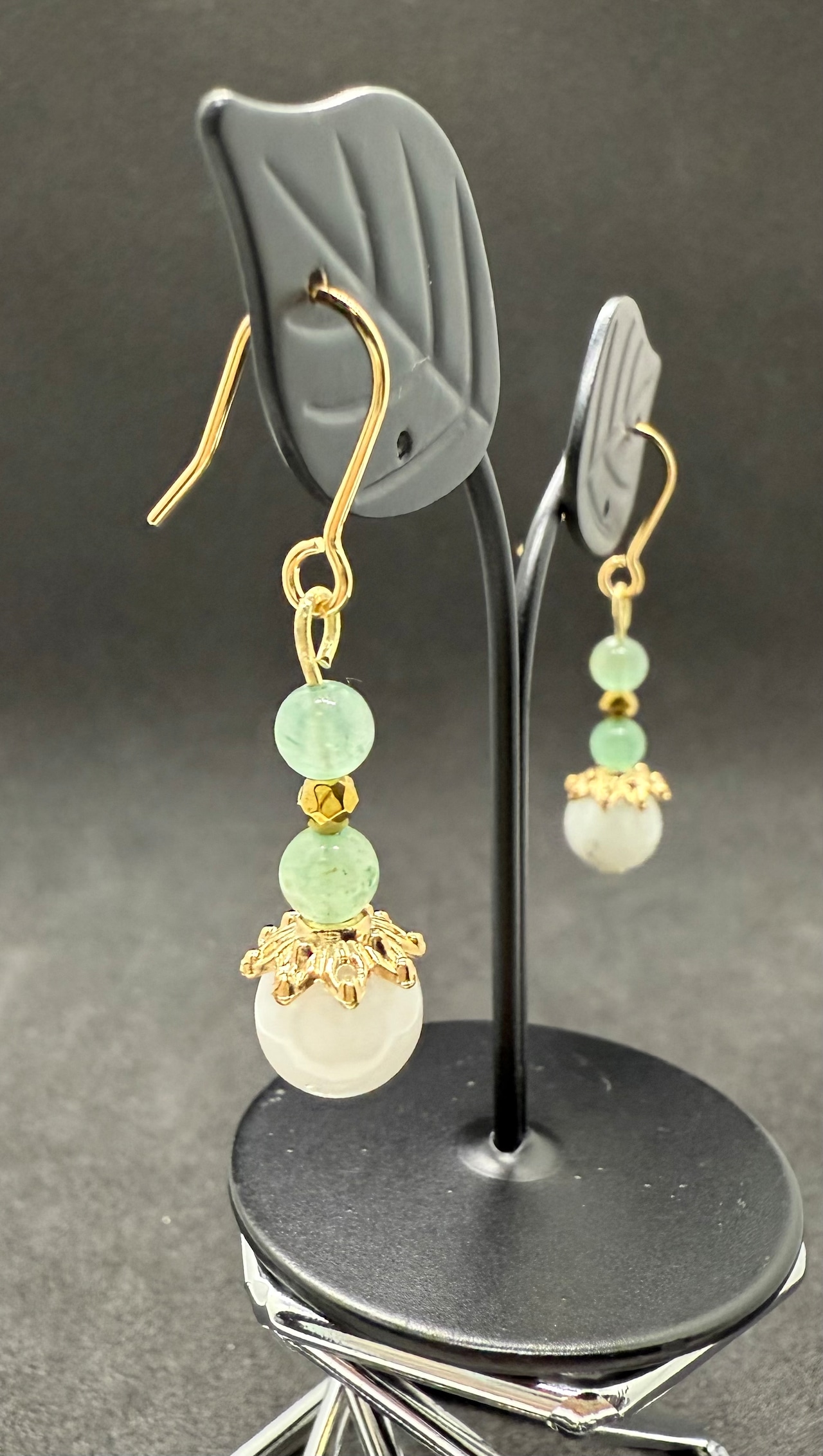 素材:ひすいとアベンチュリンビーズを使用した、ハンドメイドのピアス