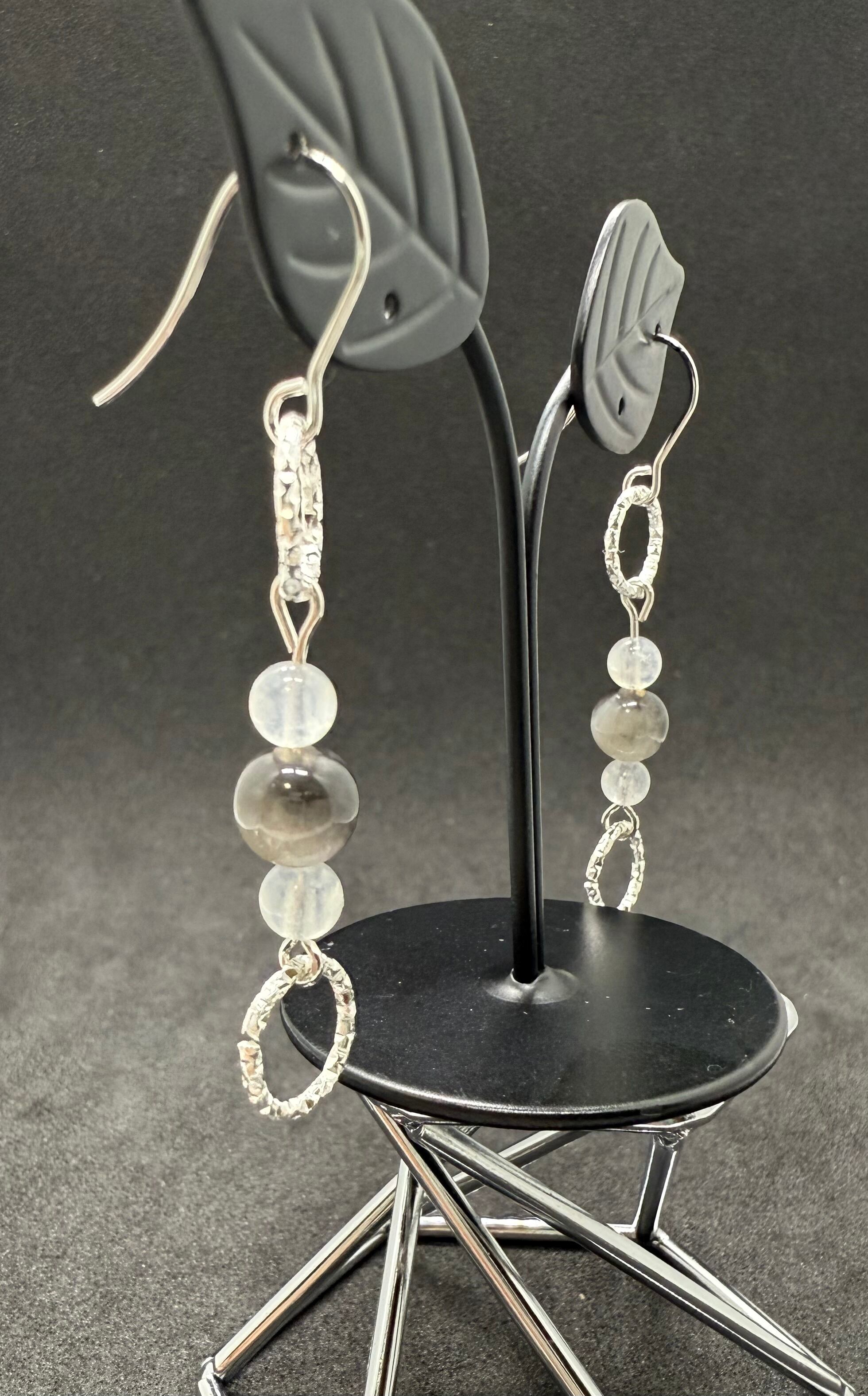 素材:神秘的な色合いを持つグレームーンストーンを使用した美しいビーズピアス。