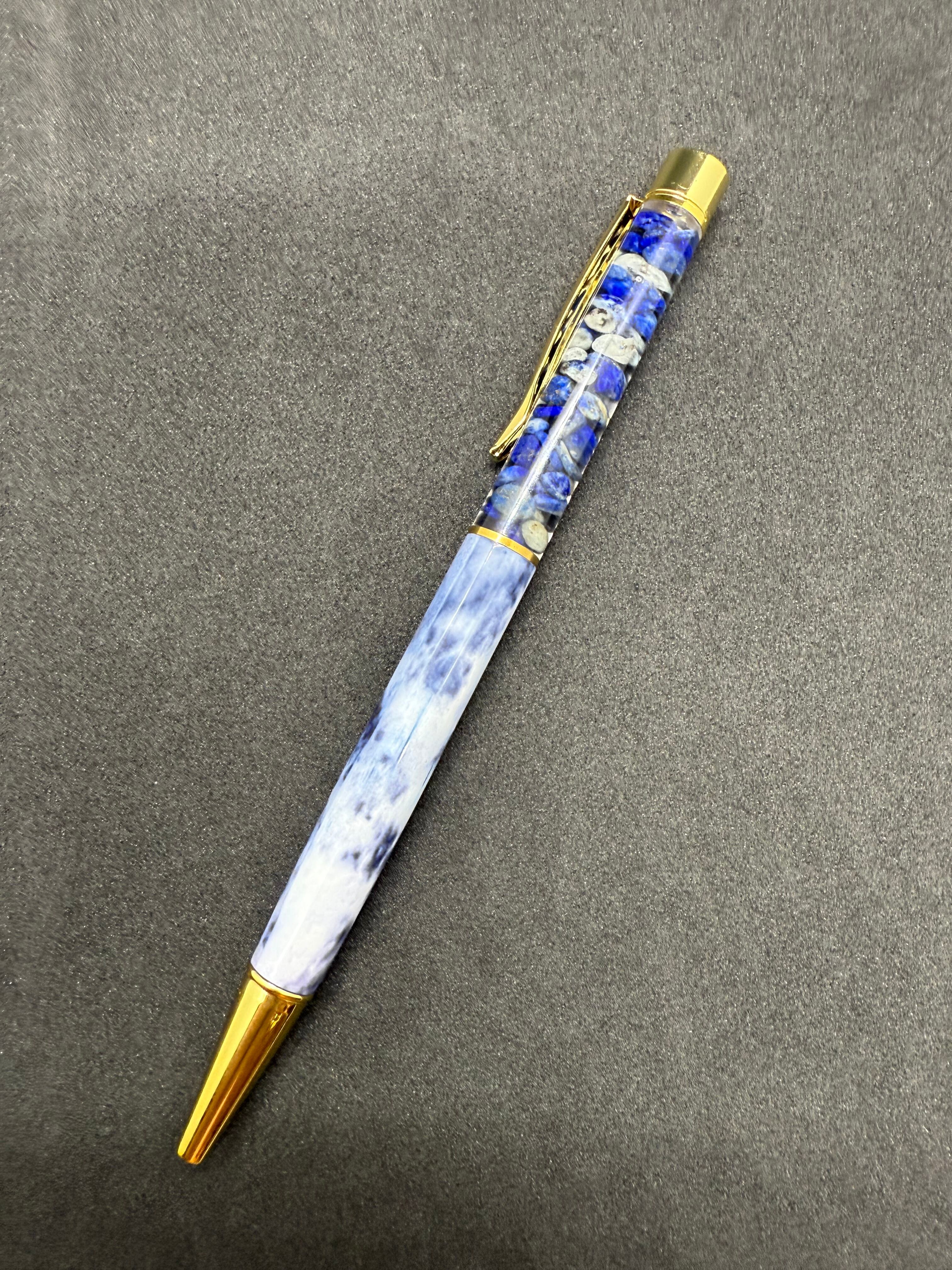 素材:神秘的な青色のラピスラズリを使用した魅力的なボールペンです。