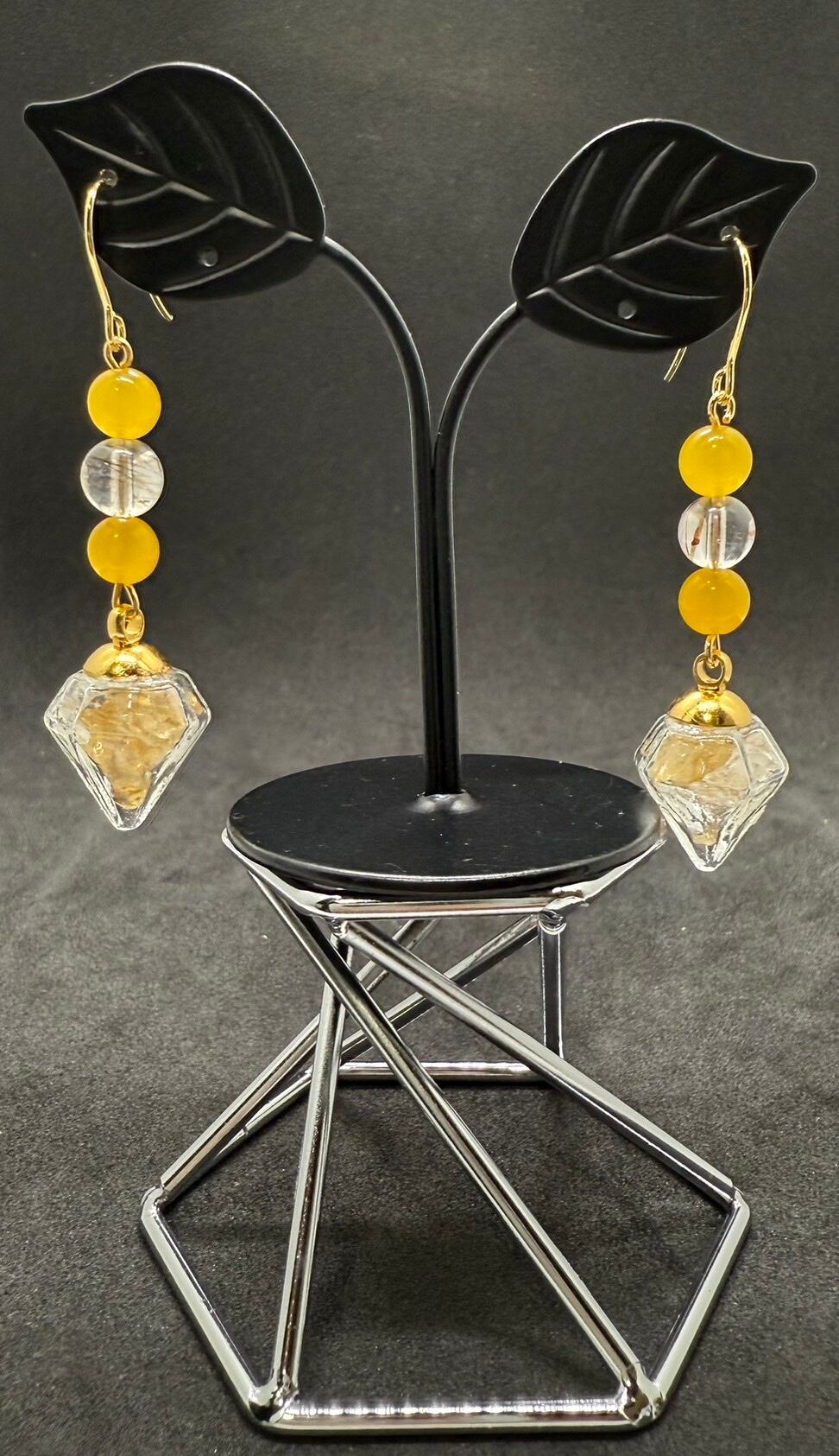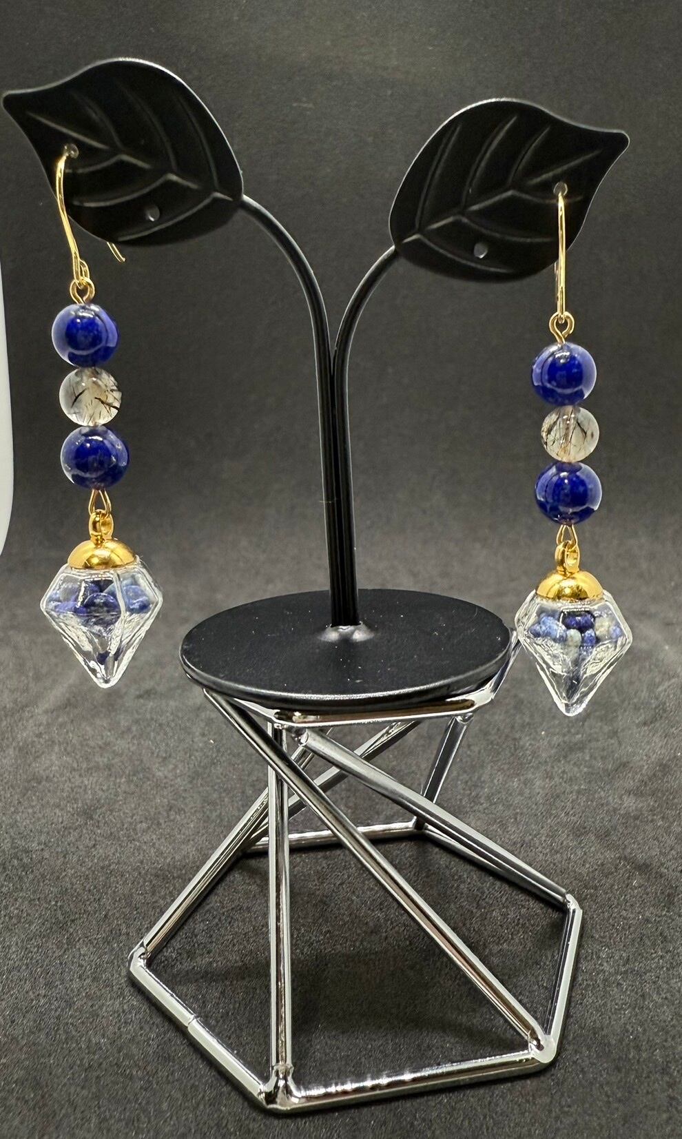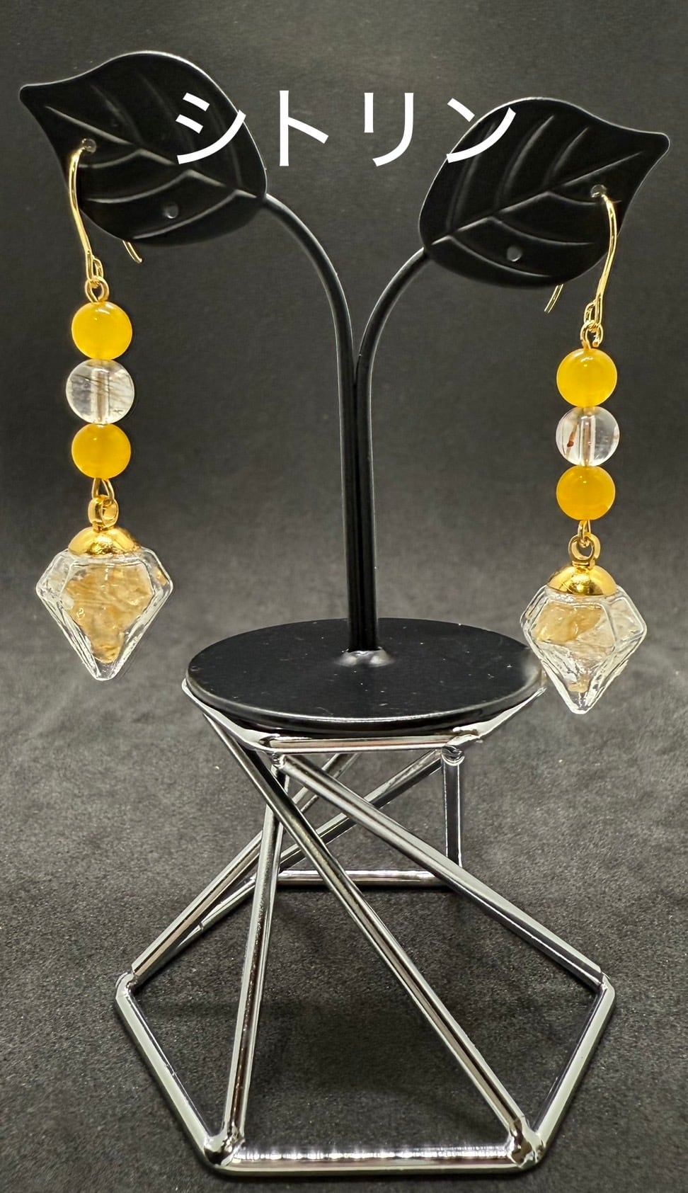 素材:美しい天然石の細石を多面体ドームに封入した魅力的なピアスです。