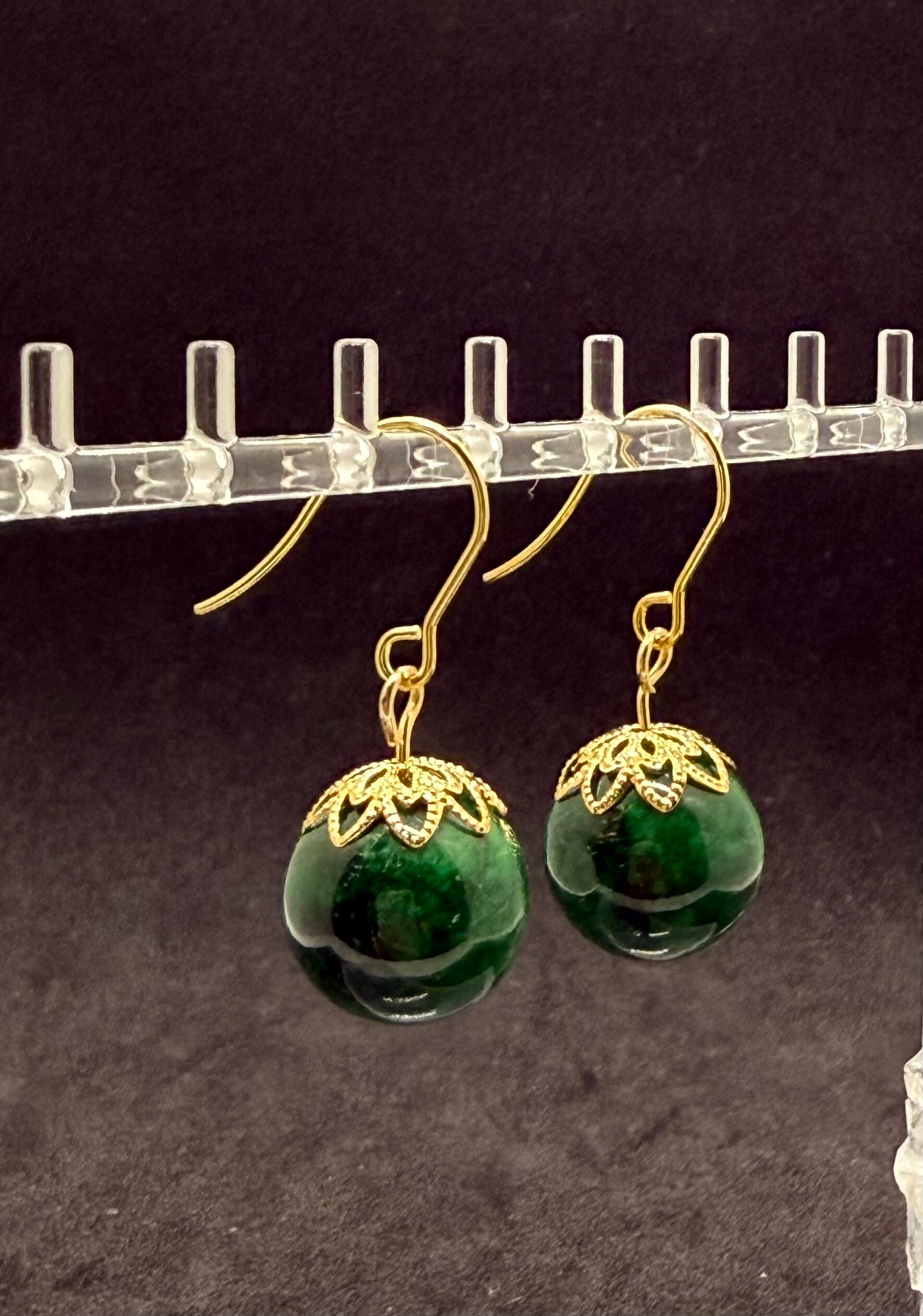 素材:美しい緑色が特徴のクリソコラを使用したハンドメイドのピアスです。