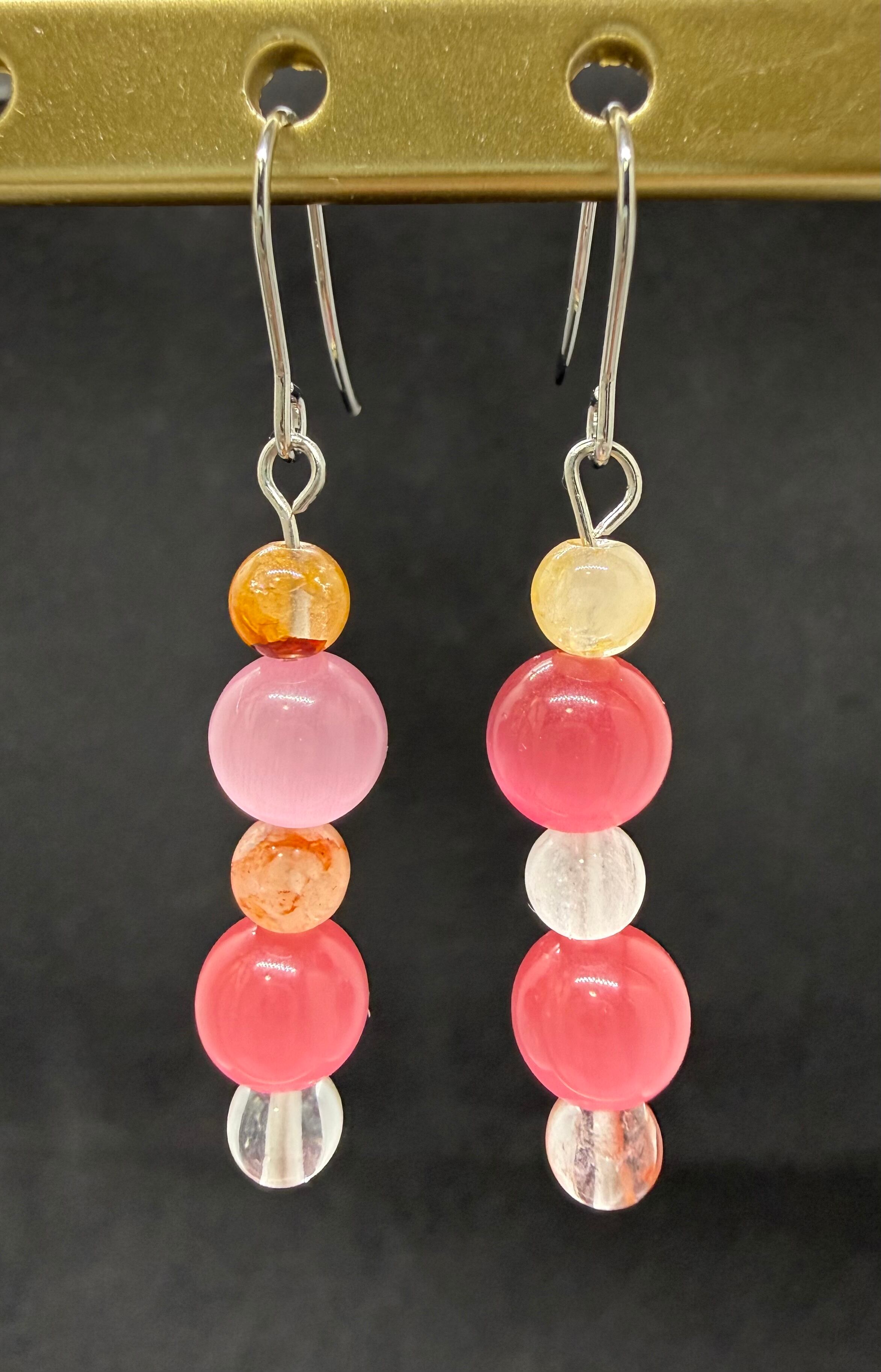 素材:神秘的な輝きを持つピンクキャッツアイと、優しいガーデンクォーツを使用した美しいビーズピアスです。