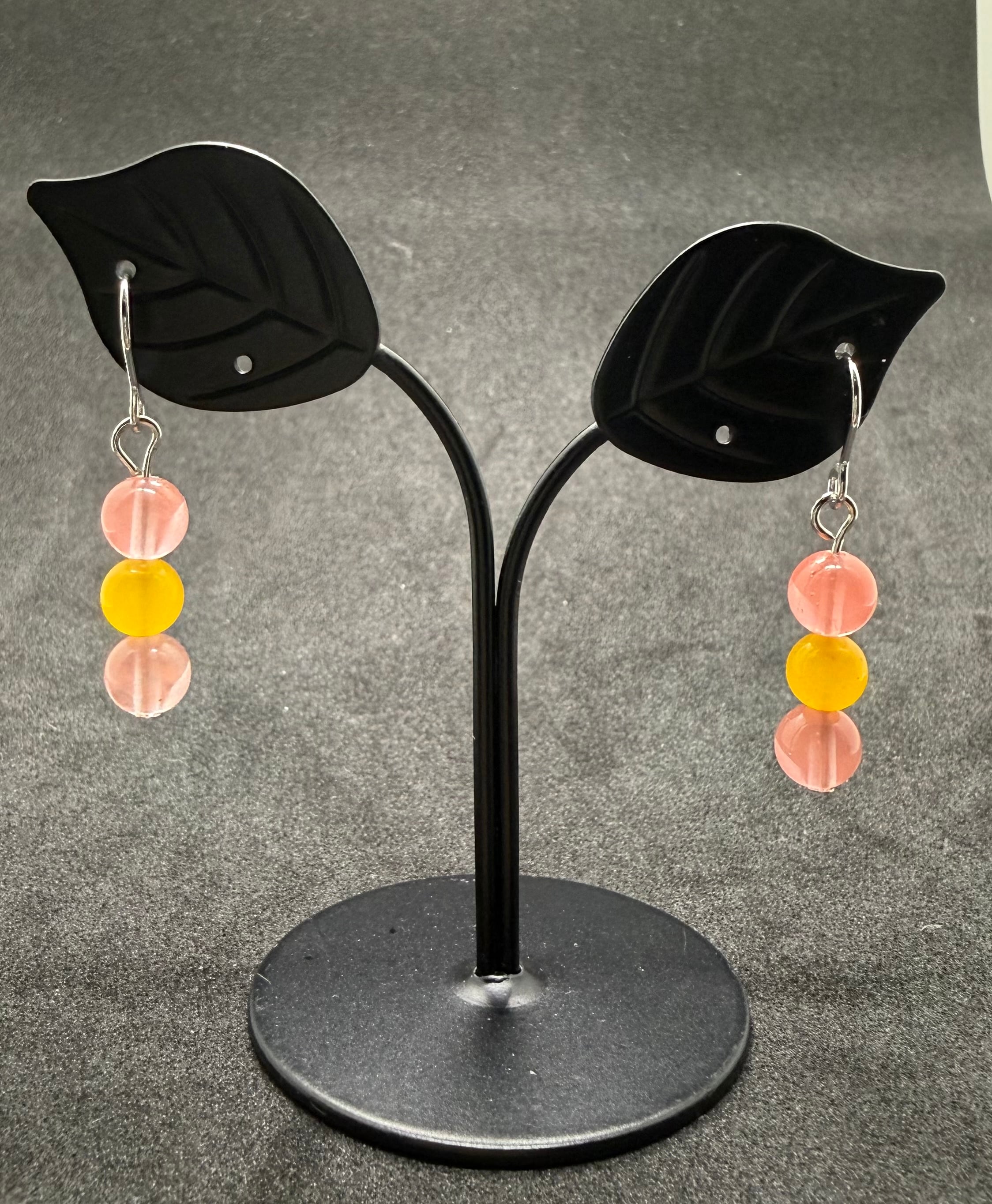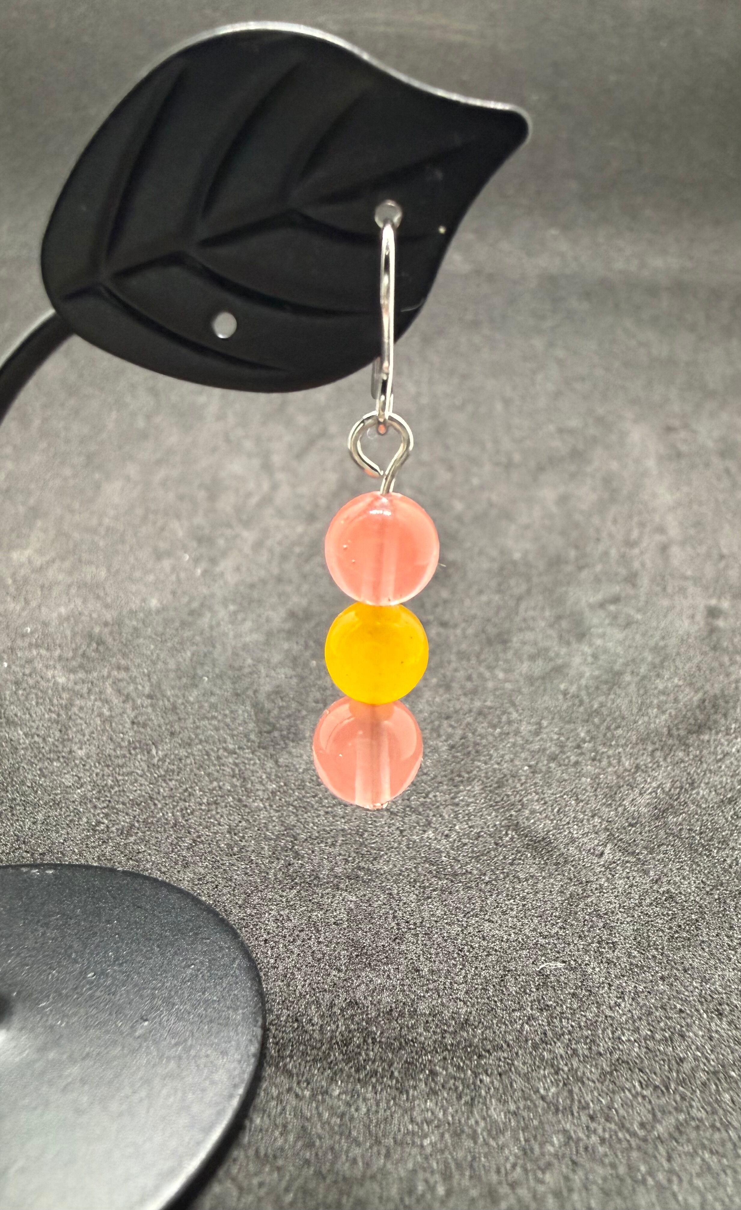 素材:鮮やかな色合いとユニークな模様が魅力のスイカ水晶と、華やかな染めジェイドを使用したエレガントなビーズピアスです。