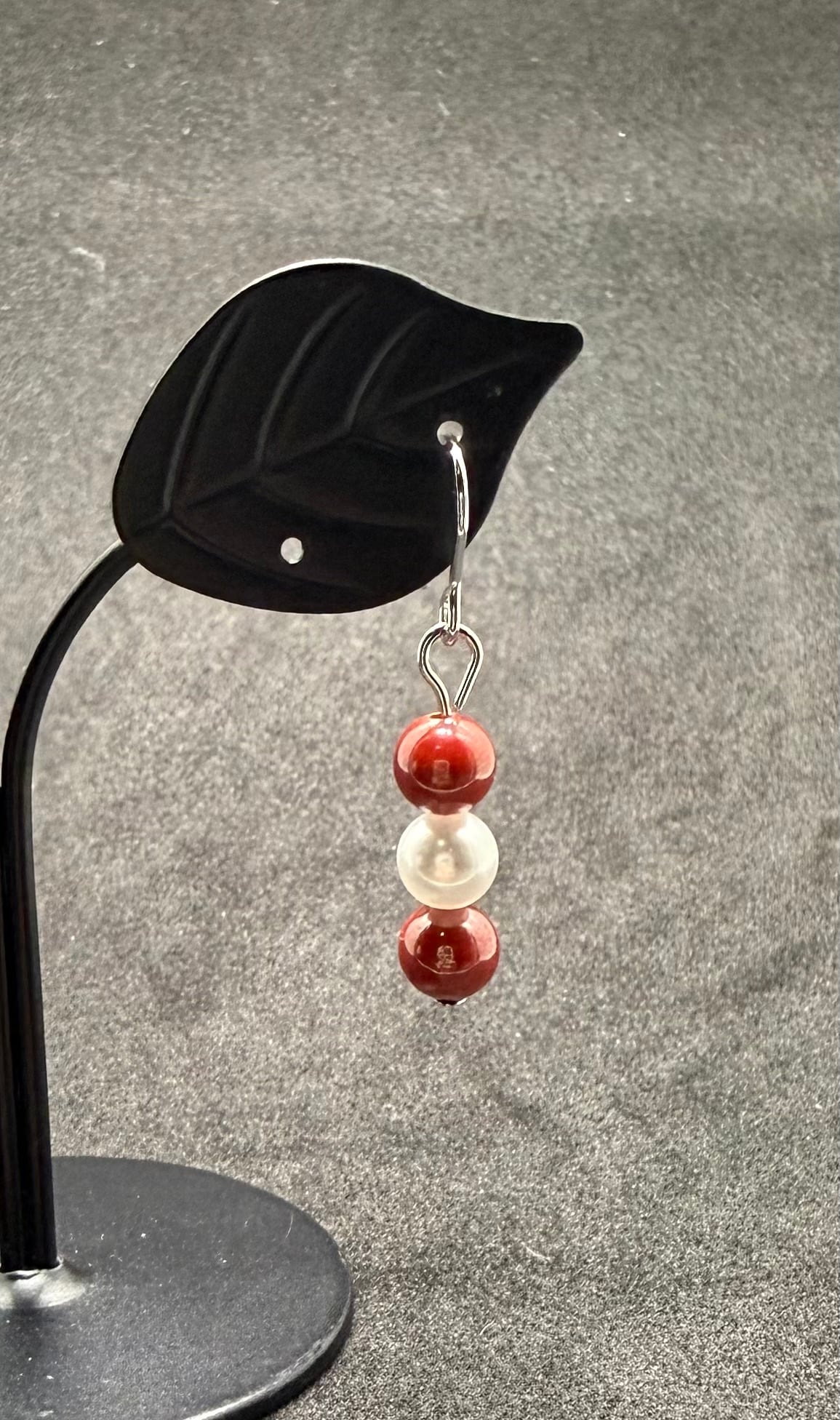 素材:深みのある赤色が特徴のシナバーと、上品な光沢を持つパールを使用した魅力的なビーズピアスです。