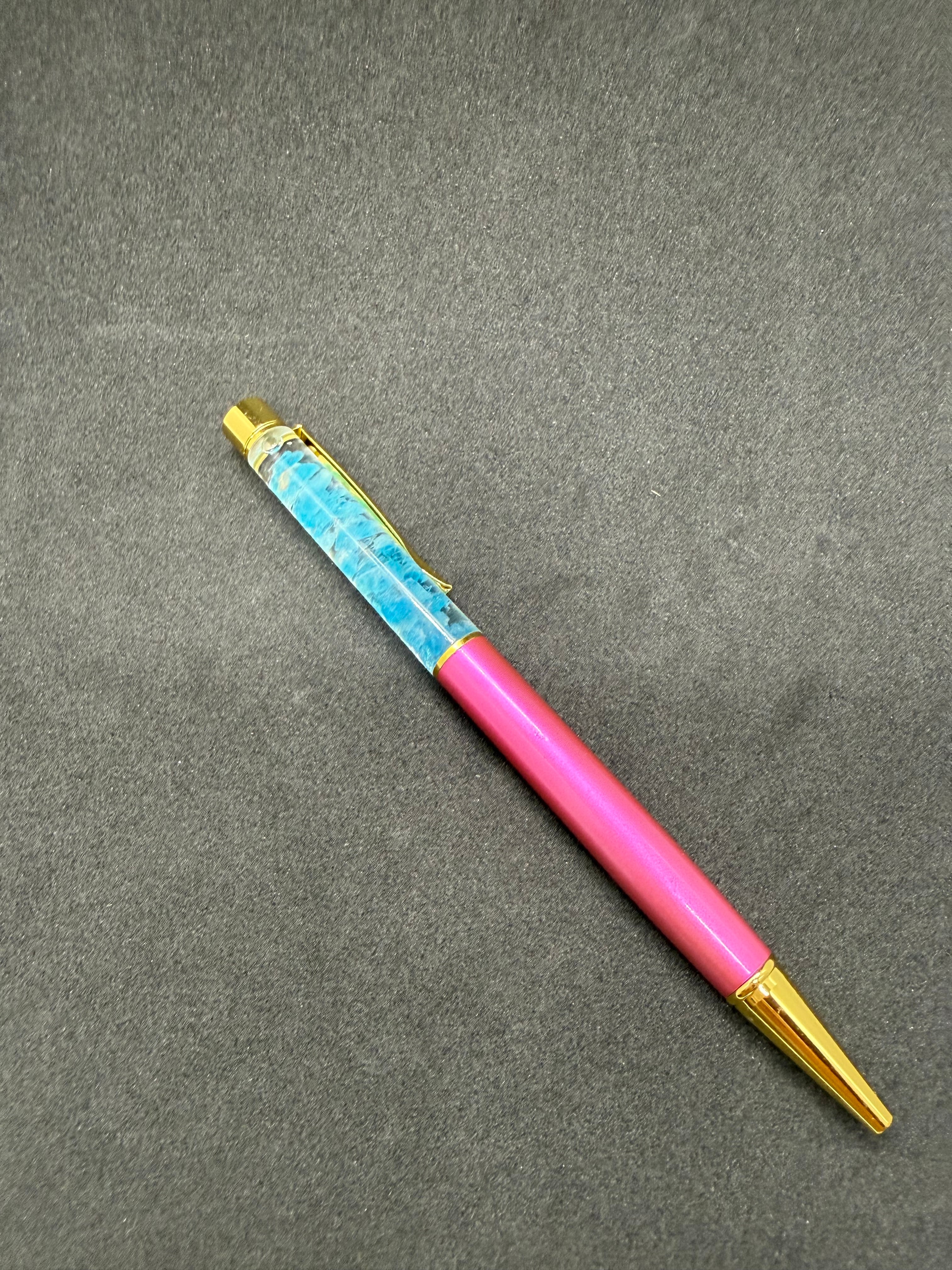 素材:美しい青色のアパタイトを使用した魅力的なボールペンです。
