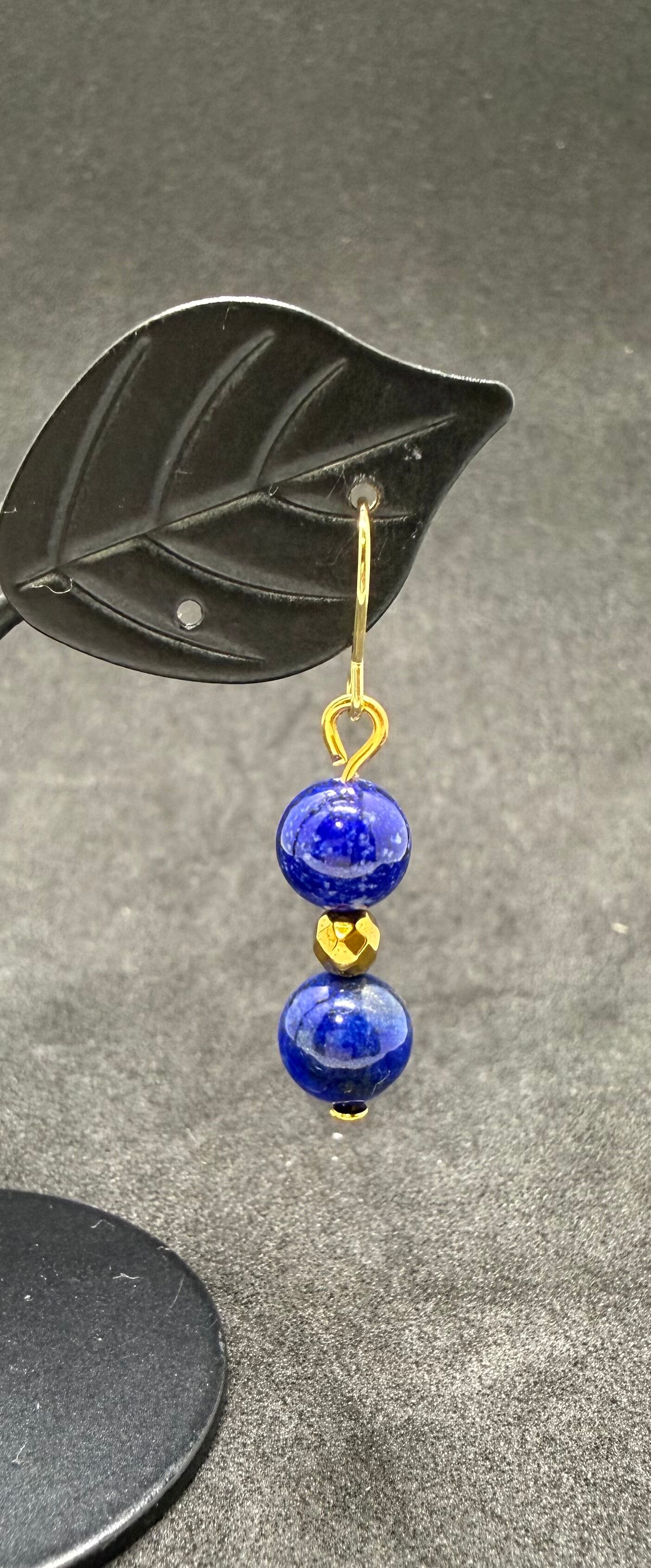 素材:深い青色のラピスラズリと輝くパイライトを使用した魅力的なビーズピアスです。