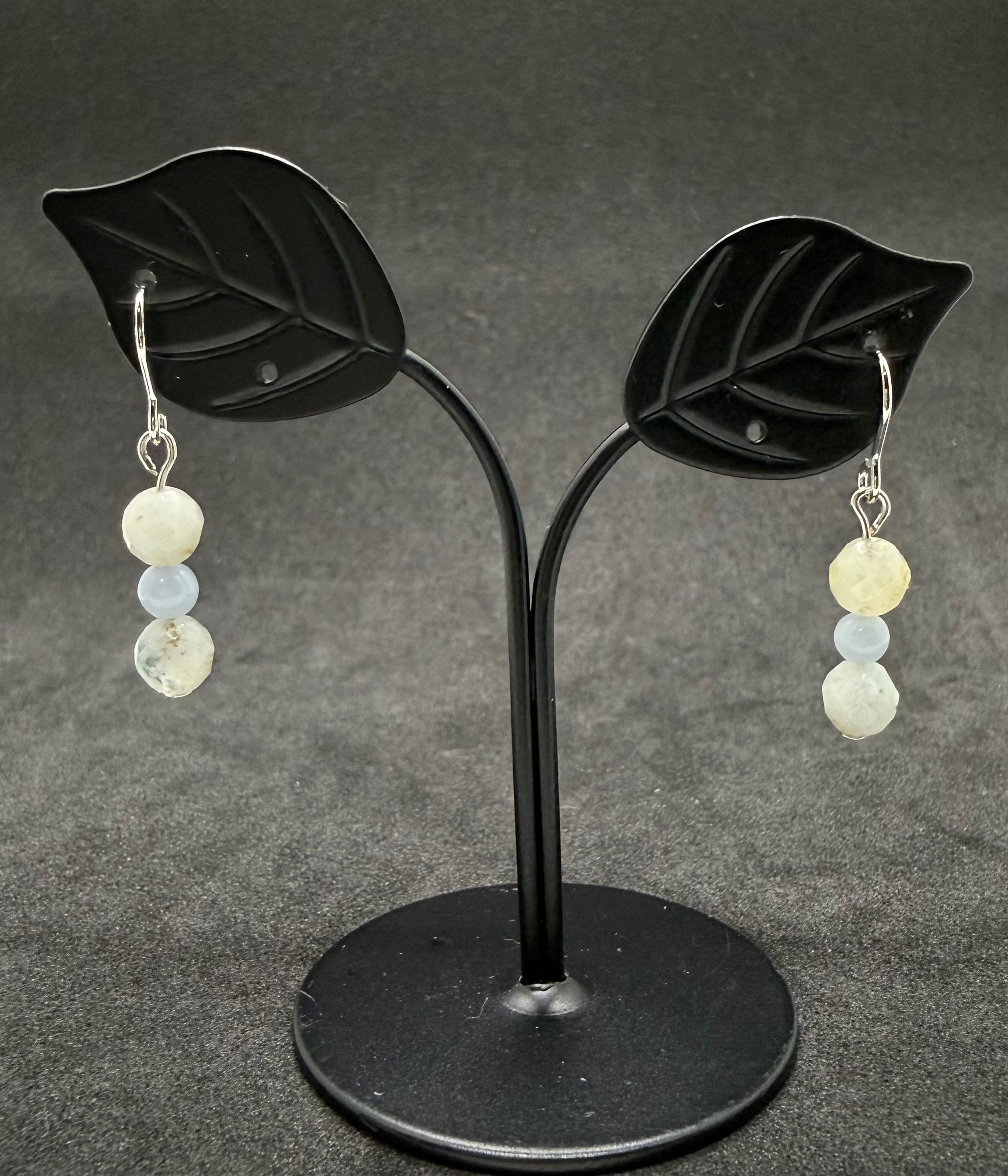 天然石ビーズピアス アクアマリン×エンジェライト