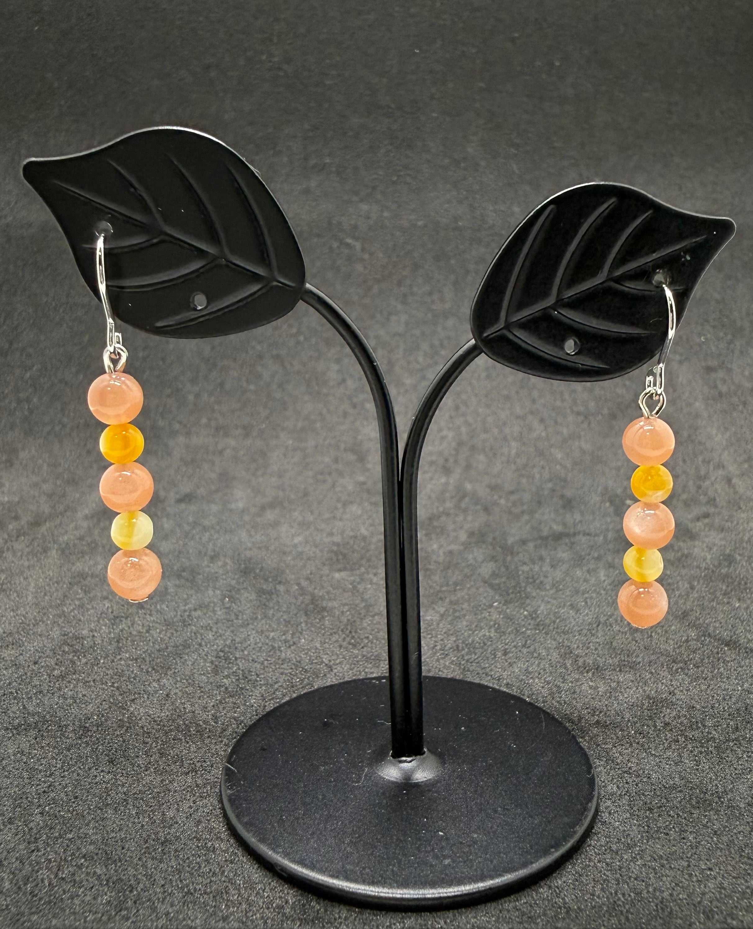 素材:温かみのあるオレンジ色のサンストーンと、優雅な光沢を持つマザーオブパールを使用した魅力的なビーズピアスです。