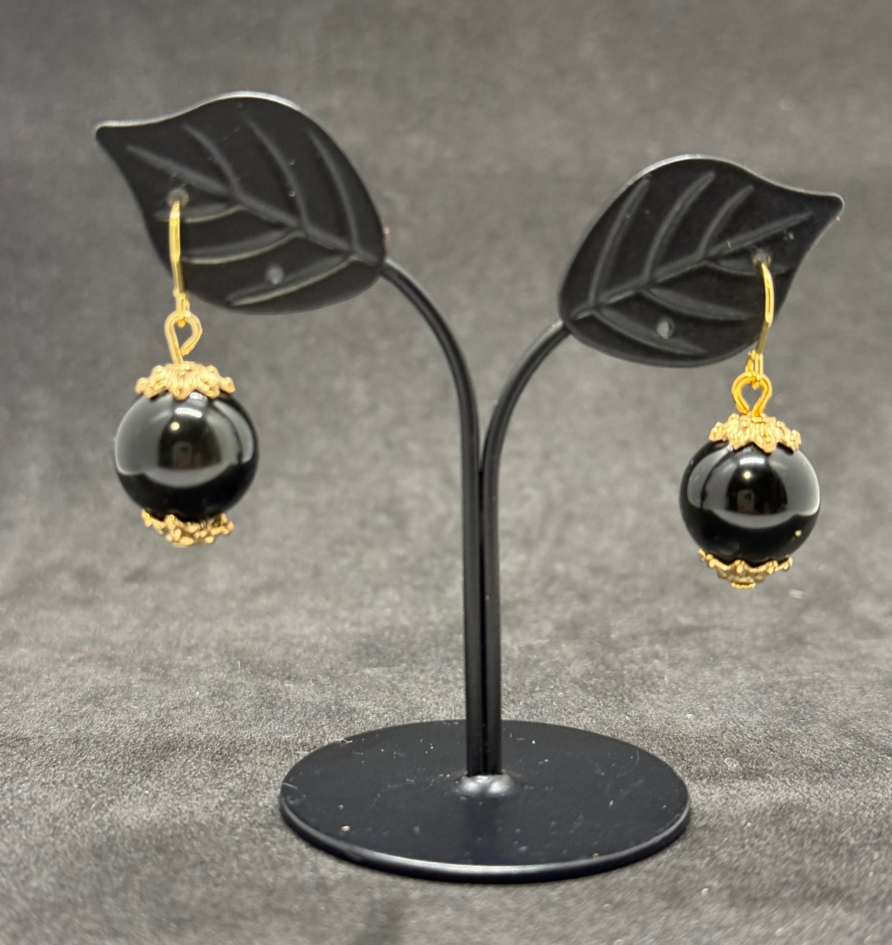 素材:深い黒色のオブシディアンを使用した特別なビーズピアスです。