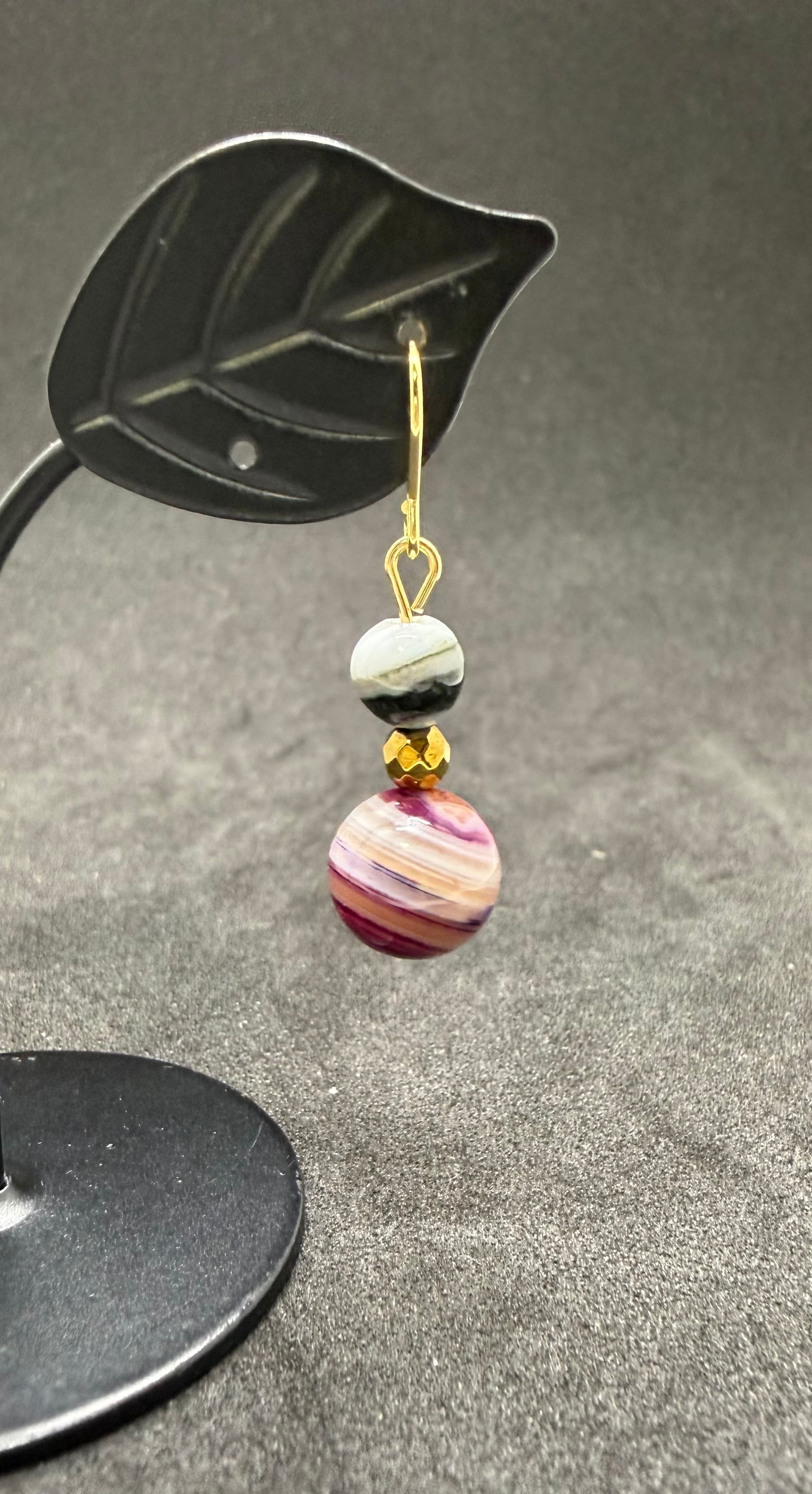 素材:美しい縞模様が特徴の天然石、縞メノウを使用した特別なビーズピアスです。