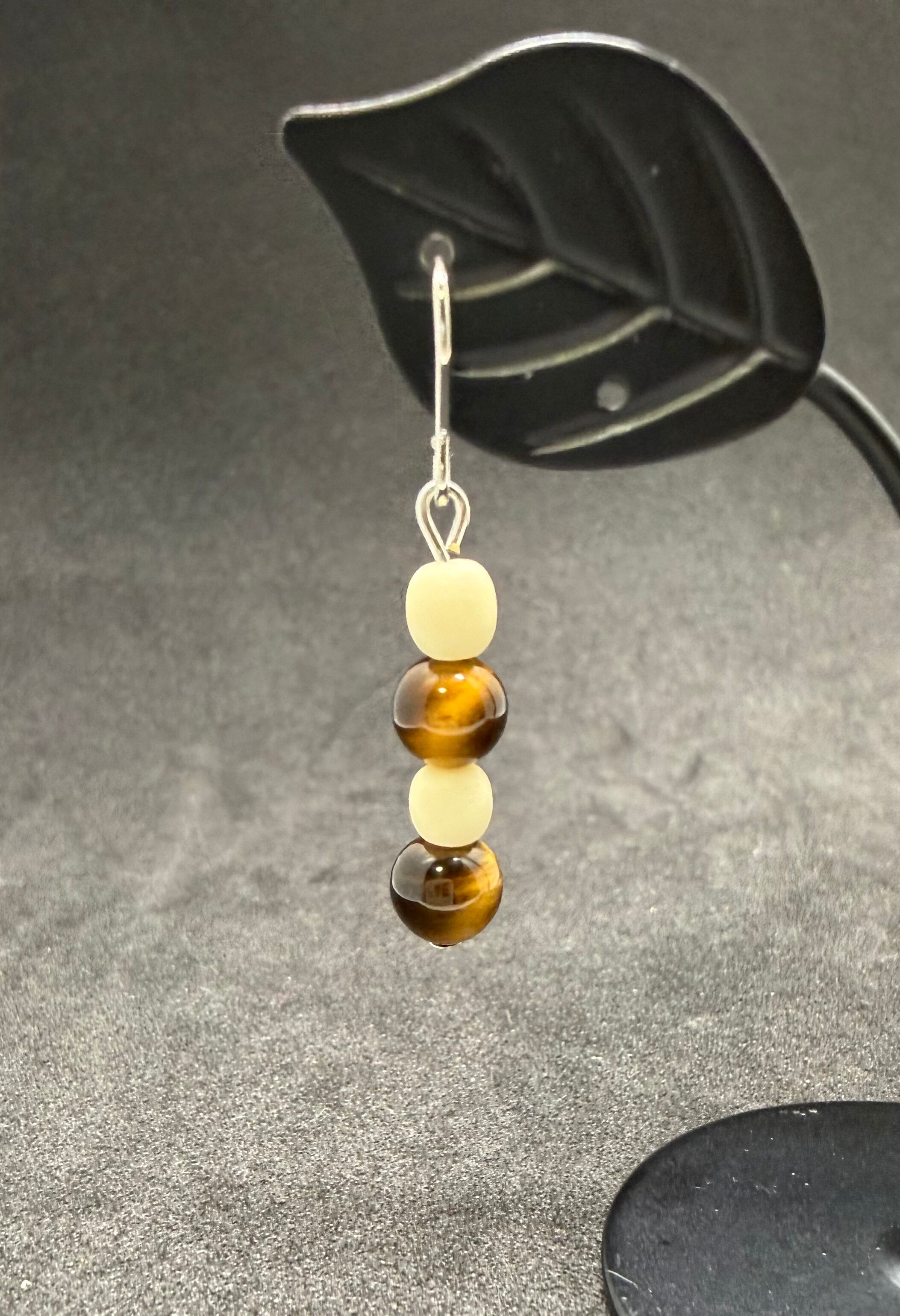 素材:美しいゴールデンブラウンの光沢を持つタイガーアイを使用した特別なビーズピアスです。
