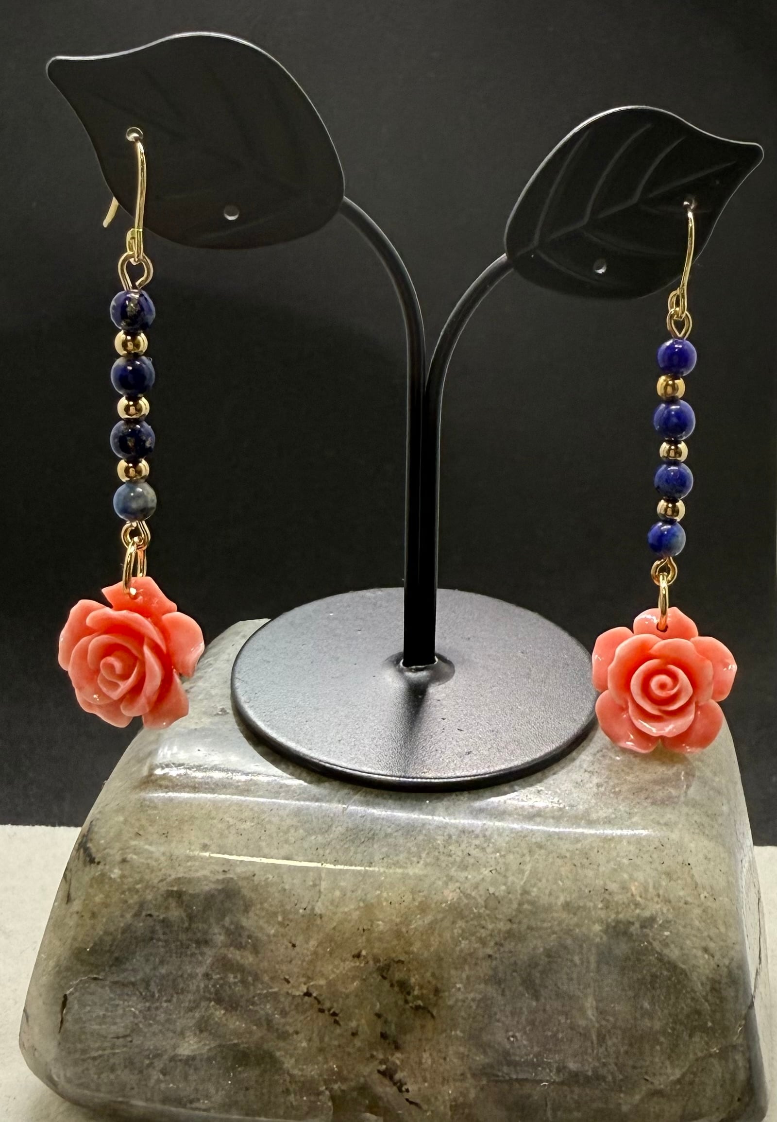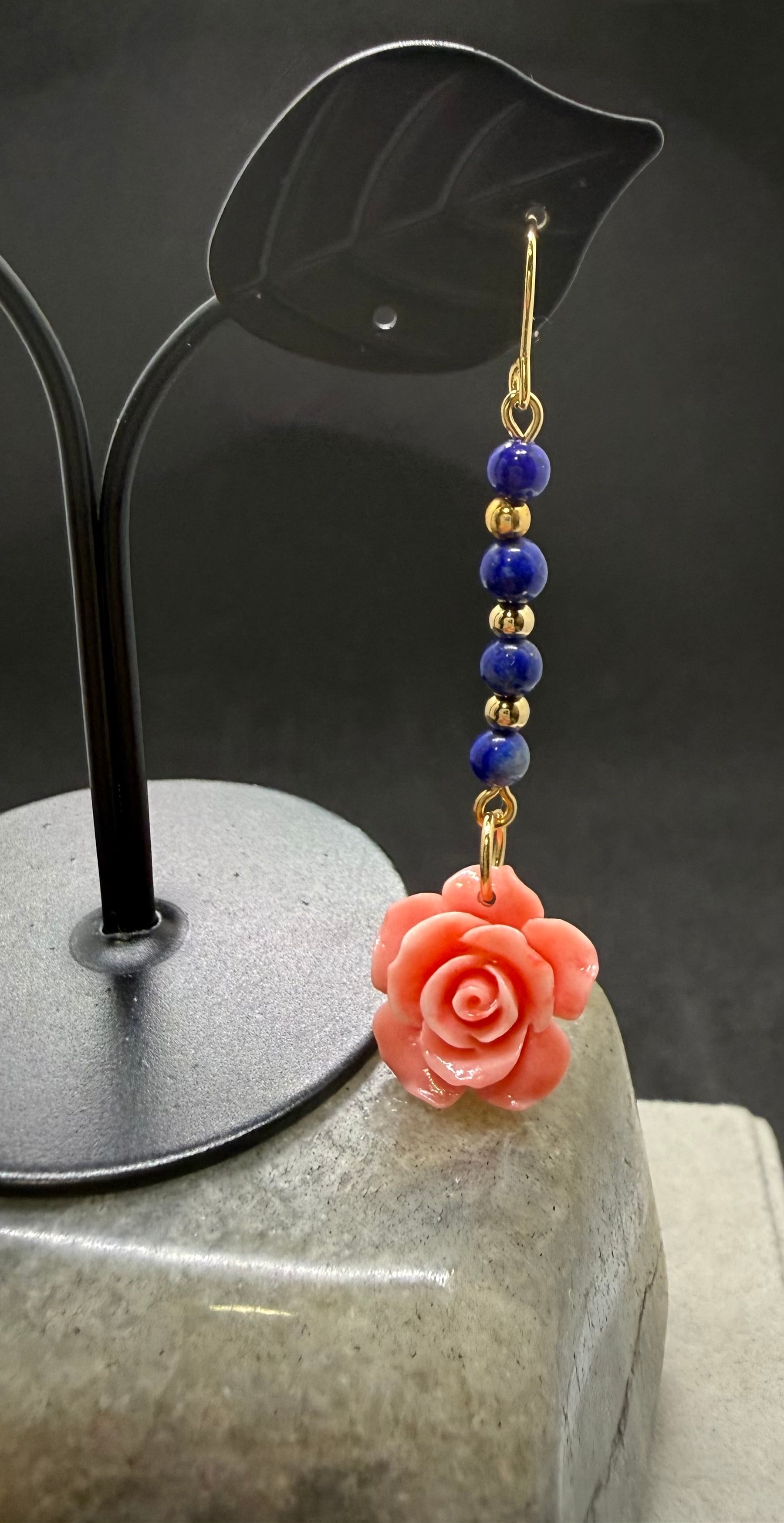 素材:美しいシェルローズと深い青色のラピスラズリを使用した特別なピアスです。